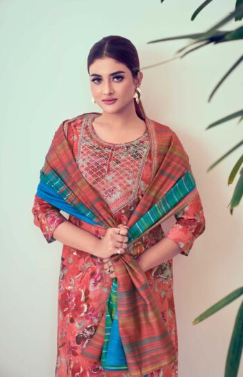 SKU: 9649CLabel Khoj Women Roman Silk Embroidery Work Firoji Color Kurta & Bottom With Dupatta Set