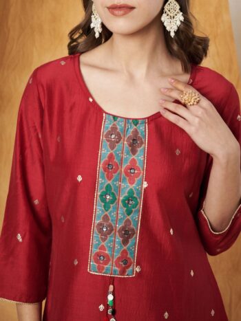 Label khoj chanderi kurta with bottom and dupptta setMaroon Color