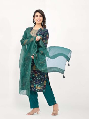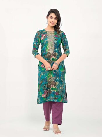 SKU: 9814ALabel khoj women silk blend printed kurta set