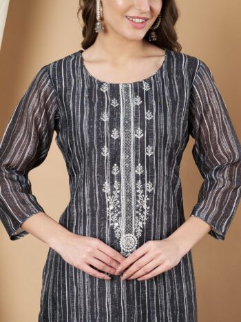 SKU: 9798CLabel Khoj Women’s Black Chinon Hand Embroidery Kurta with Pant and Dupatta