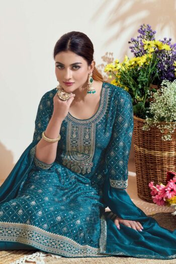 SKU: 9684BLabel Khoj Women Vichitra silk Kurta ,trouser and dupptta set
