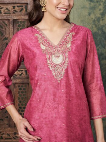 SKU: 9895ALabel Khoj Women’s Chanderi Embroidered Kurta with Pant and Dupatta ₹2,099.00 – ₹2,199.00Price range: ₹2,099.00 through ₹2,199.00