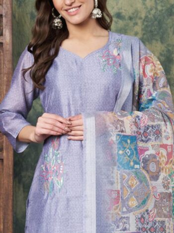 SKU: B1043Label Khoj Women’s Grey Silk Blend Embroidery Kurta with Pant and Dupatta