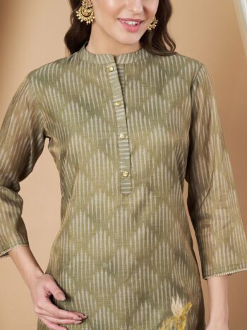 SKU: 9786ALabel Khoj Women’s Green Chanderi Button Embellished Kurta with Pant and Green Dupatta