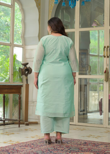 SKU: 9787ALabel Khoj Women’s Firoji Chanderi Embroidered Kurta with Pant and Firoji Dupatta