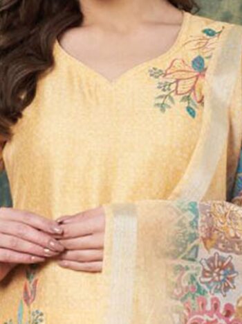 SKU: 9790ALabel Khoj Women’s Yellow Chanderi Embroidered Kurta with Pant and Yellow Dupatta