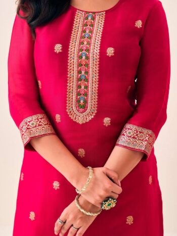 SKU: 9759ALabel khoj Pure viscose organza jacqured with hand work kurta set