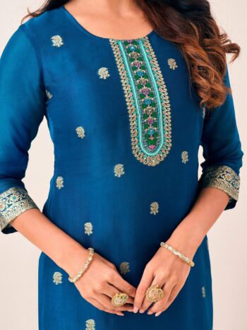 SKU: 9818Label khoj Pure viscose tissue silk with heavy hand work kurta set