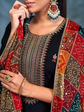 SKU: 9816Label khoj Silk top with heavy embroidery and Pure cotton lining kurta setBLACK Color