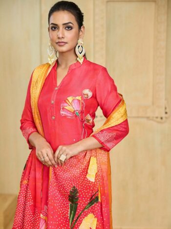SKU: 9744Label khoj Pure viscose maslin with hand work Kurta ,trouser and dupptta setRANI Color