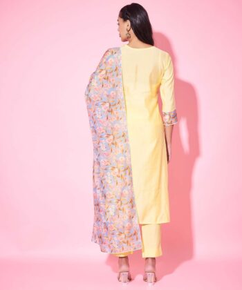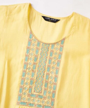 Label Khoj Women’s Mustard Chanderi Embroidered Kurta with Pant and Mustard Dupatta