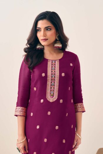SKU: 9759ALabel khoj Pure viscose organza jacqured with hand work kurta set