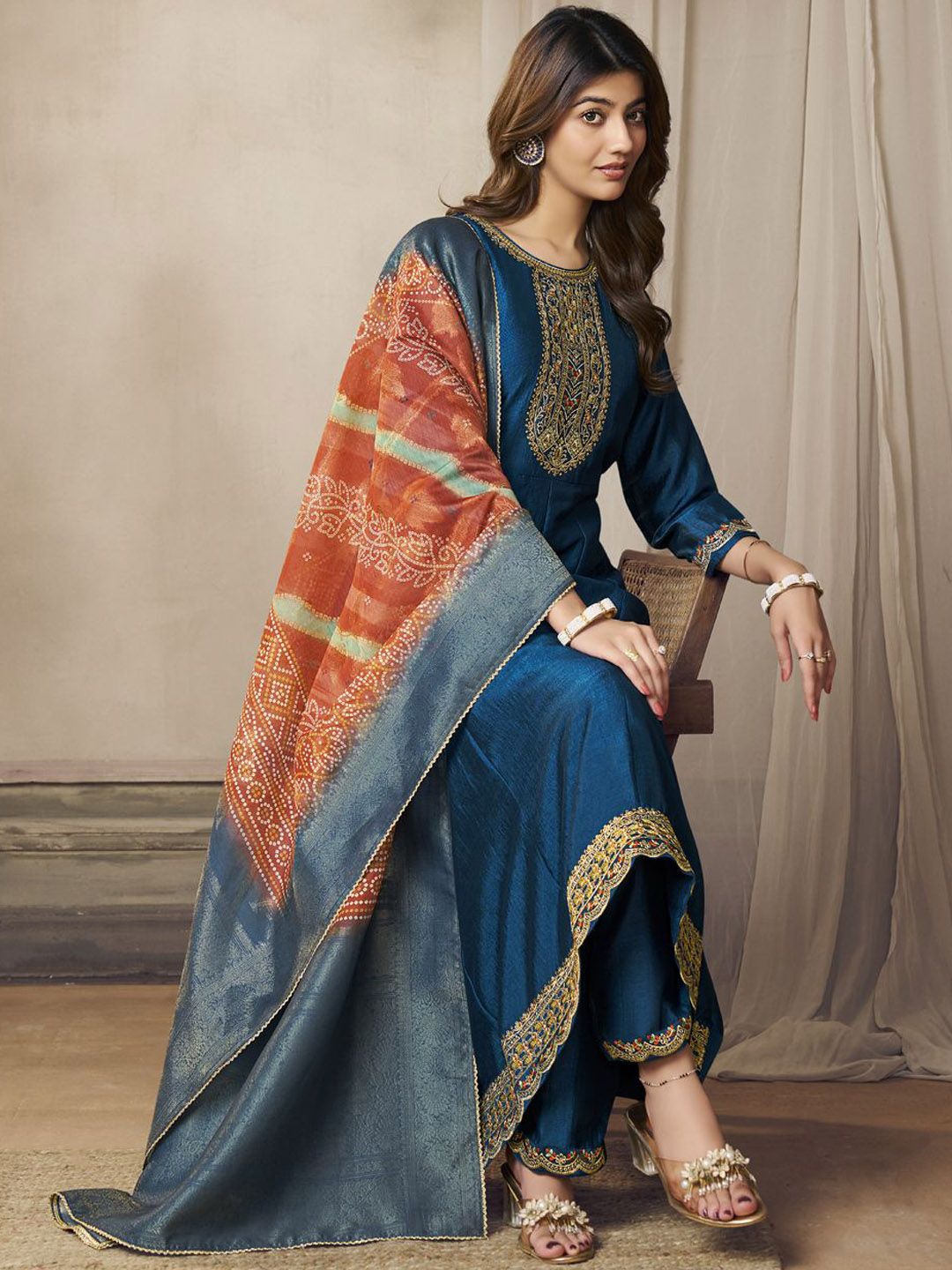Blue embroidered Kurta with Trousers with dupatta