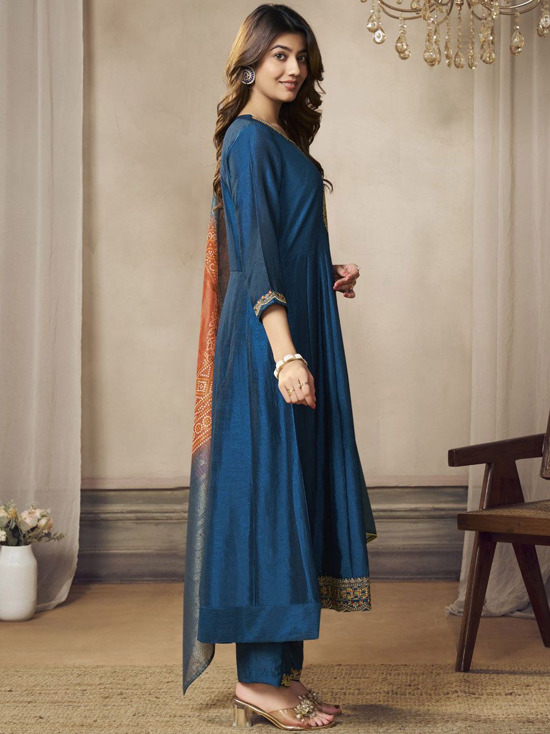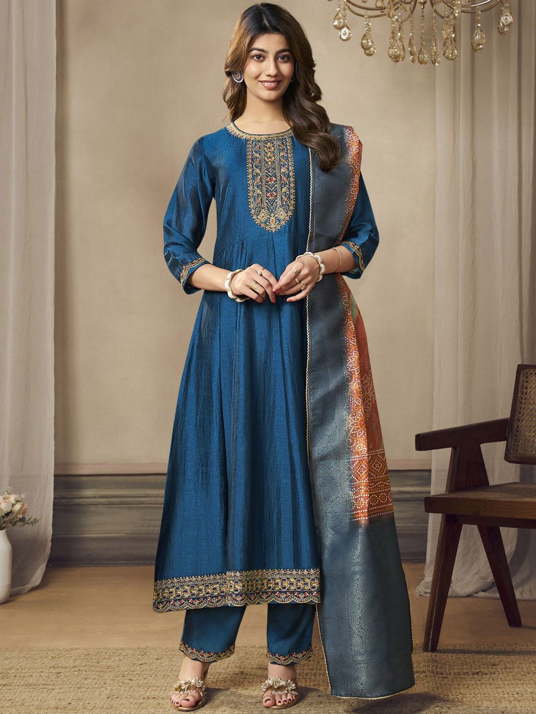 Label khoj Beautiful Anarkali kurta With Pant and Dupatta Set Blue Color