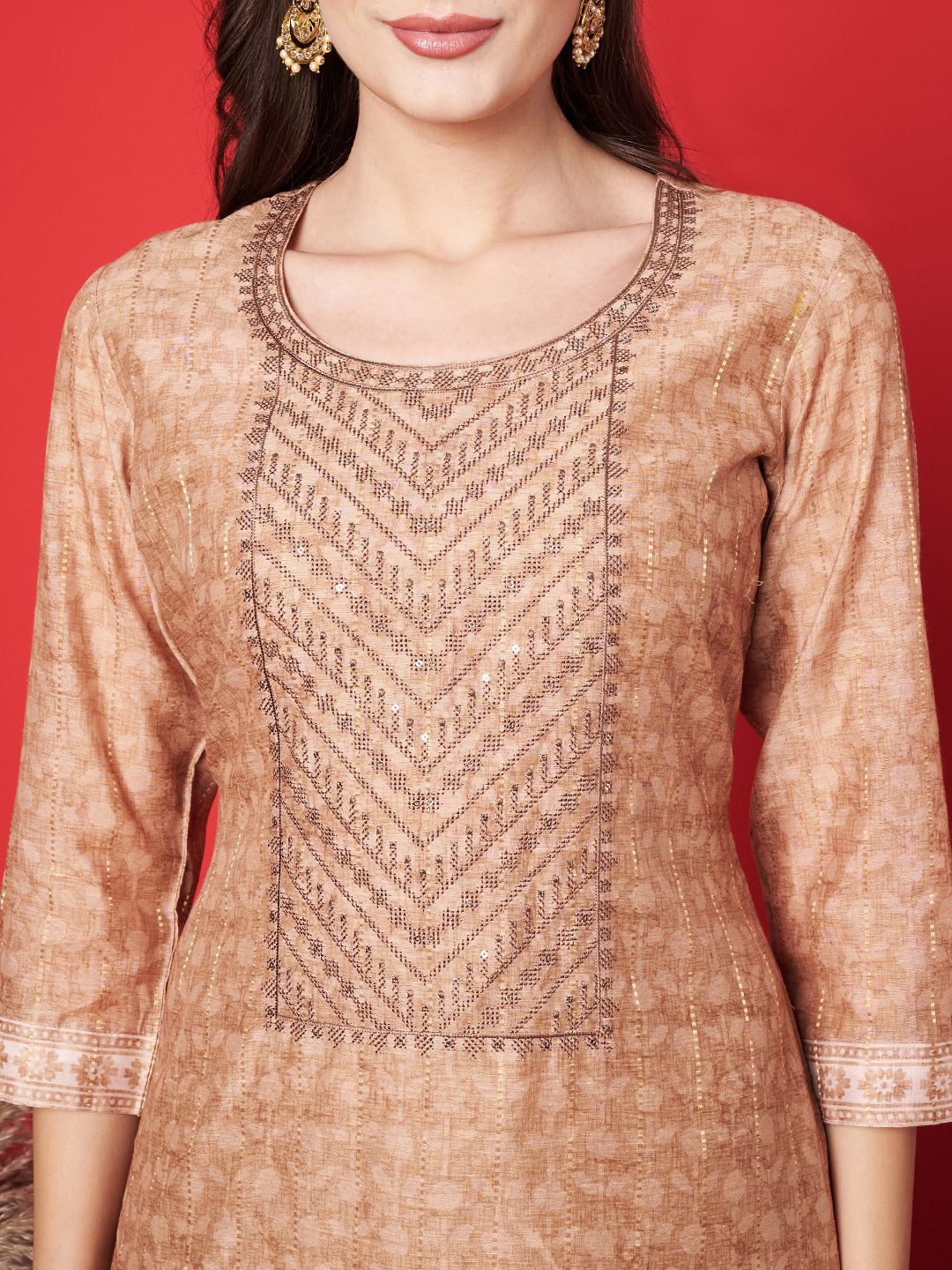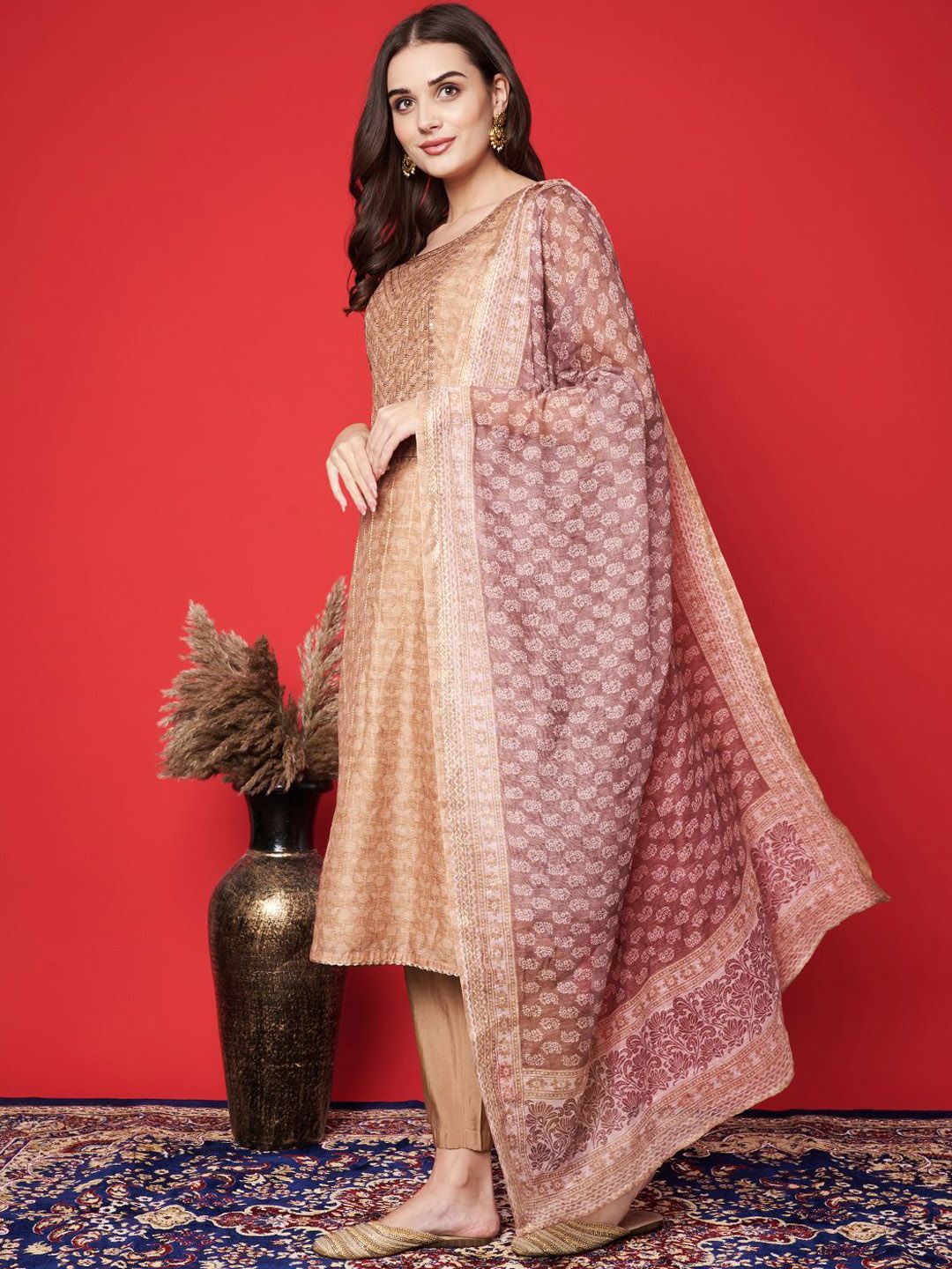 Label khoj chanderi kurta with bottom and dupptta setBeige Color