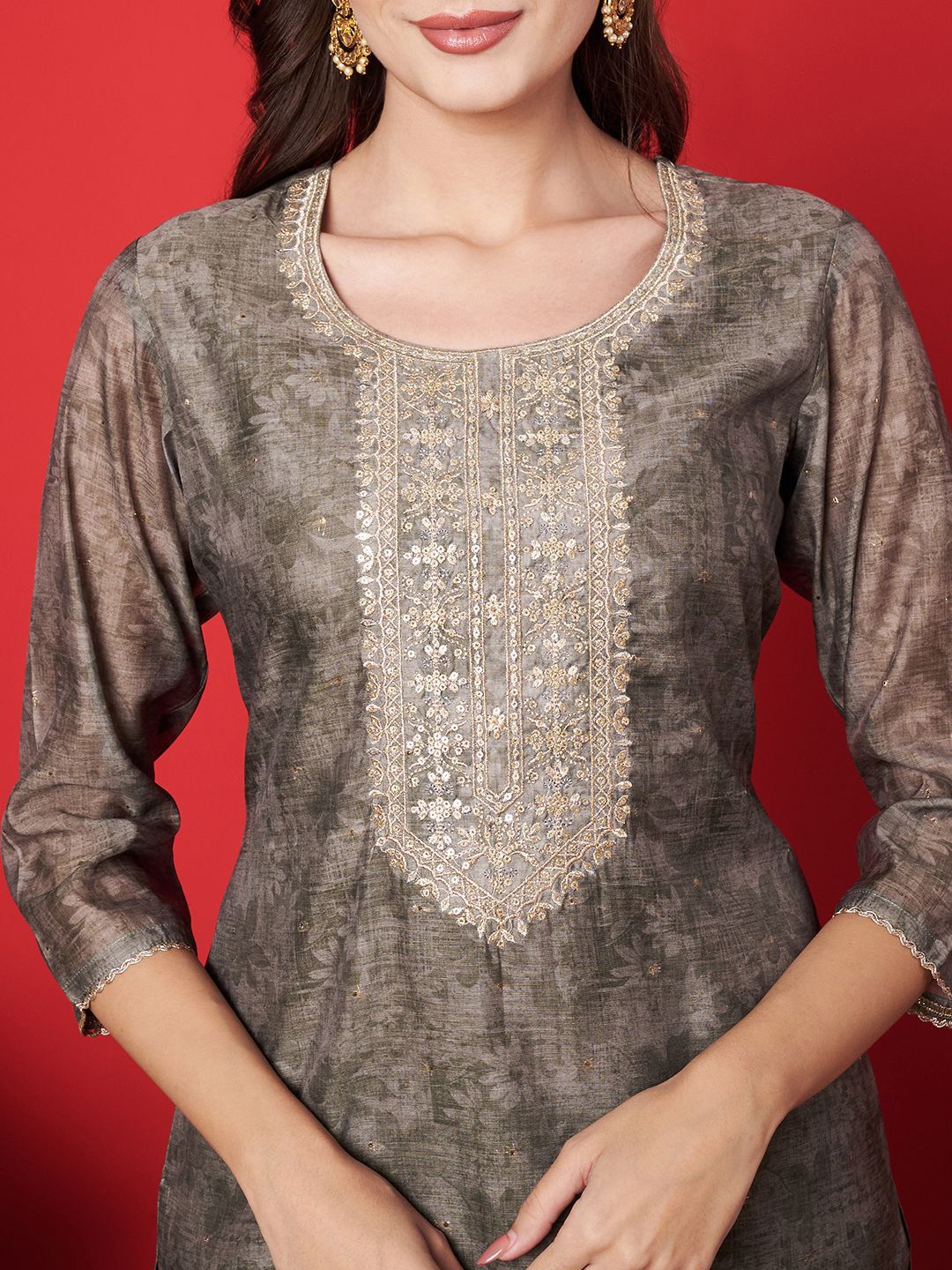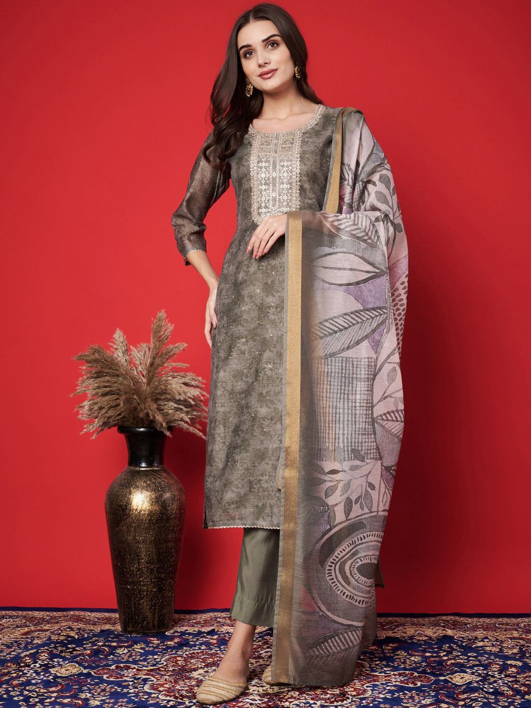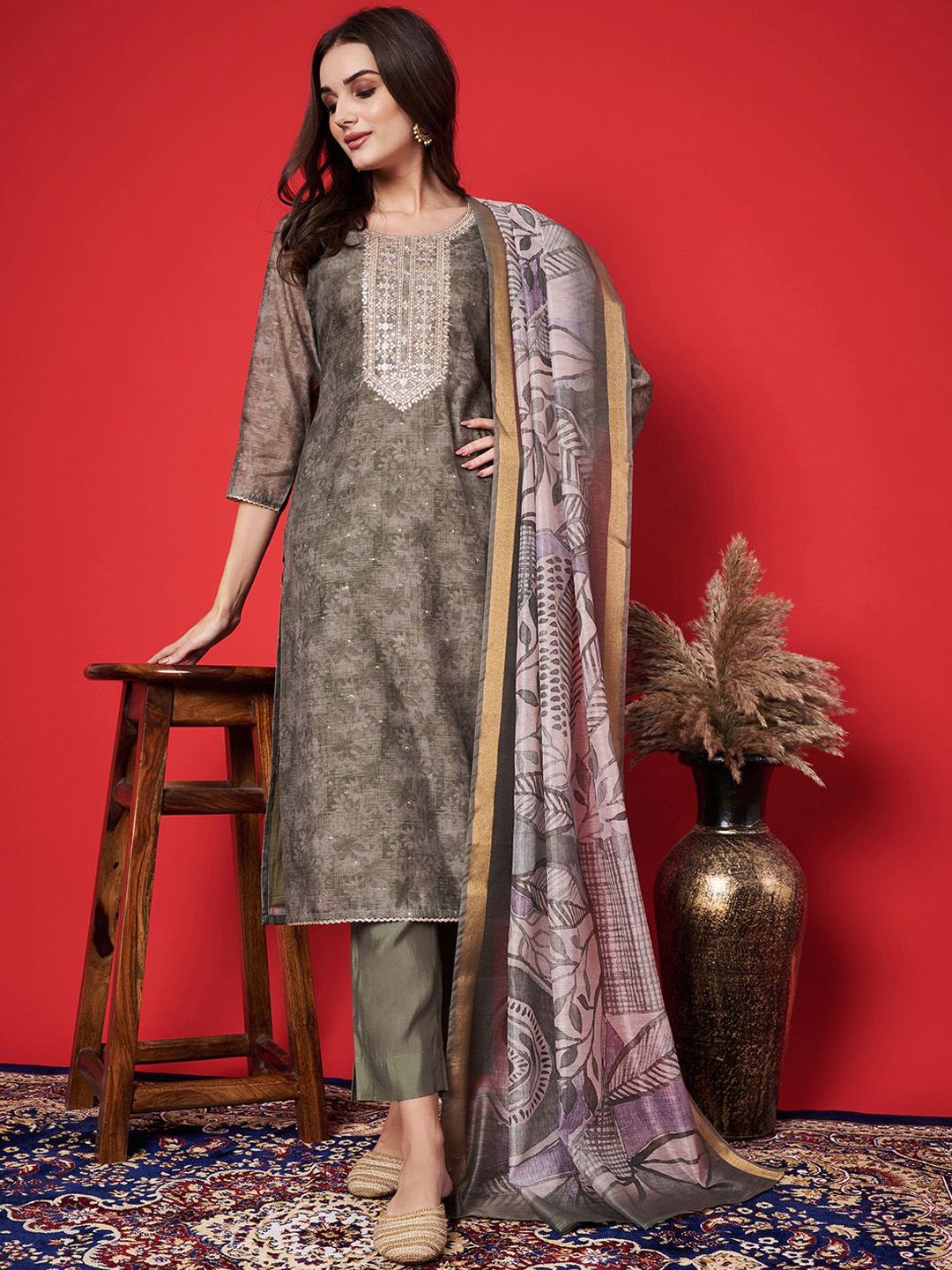 Label khoj chanderi kurta with bottom and dupptta setGreen Color