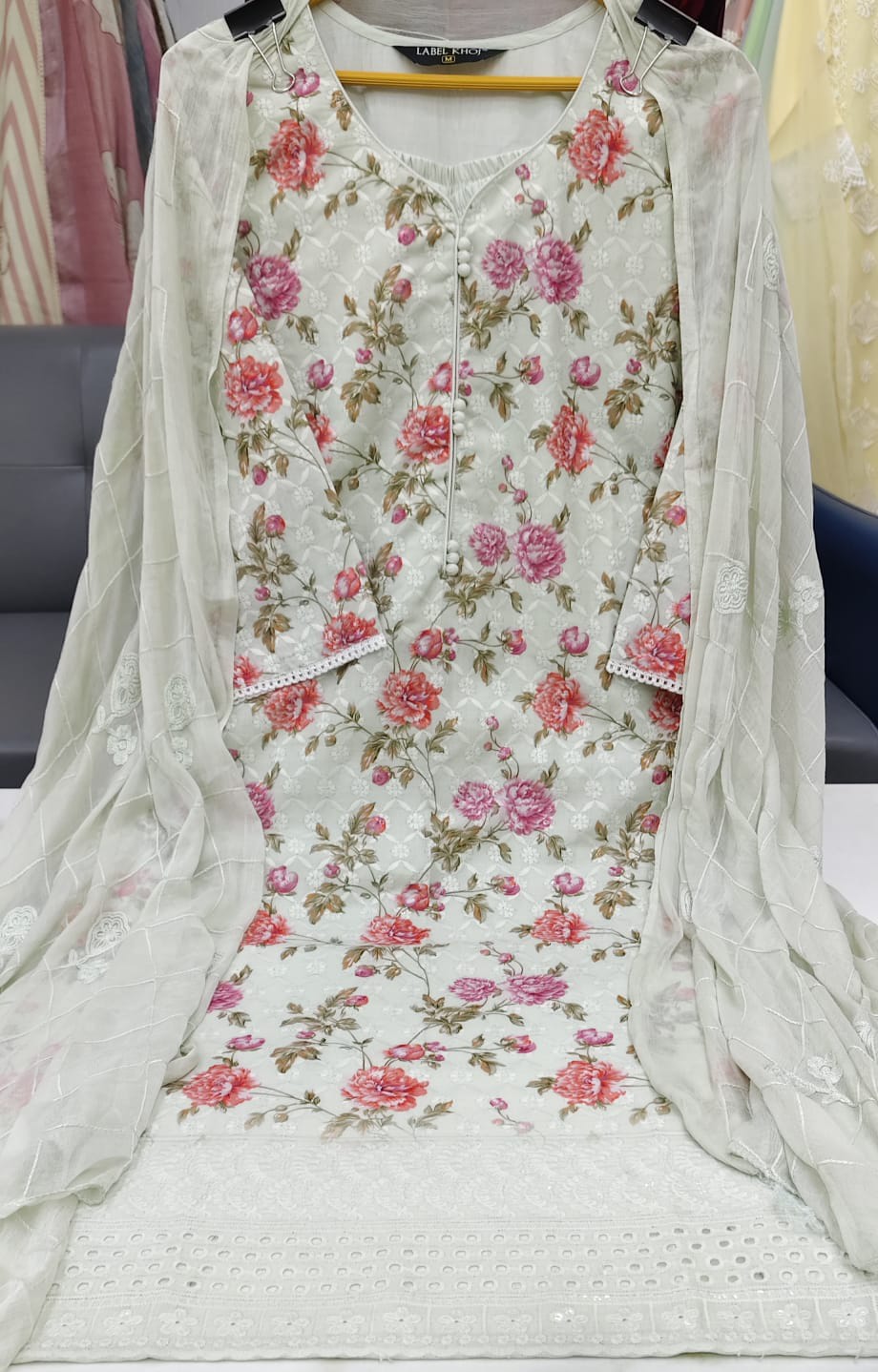 Label khoj chiffly print kurta with pant and dupatta