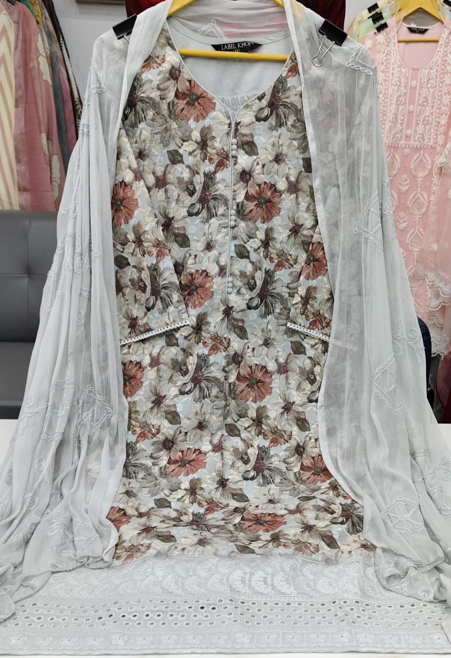 Label khoj chiffly print kurta with pant and dupatta