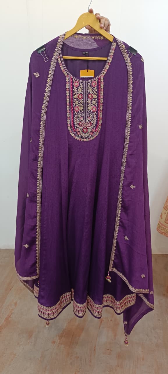 Label khoj Chinon butti Anarkali kurta With Pant and Dupatta Set