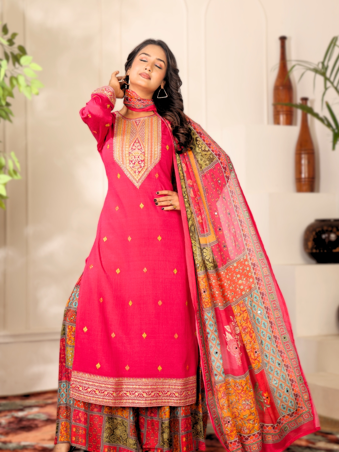 Label khoj chinon mal Embroidered Kurta With sharara & Dupatta