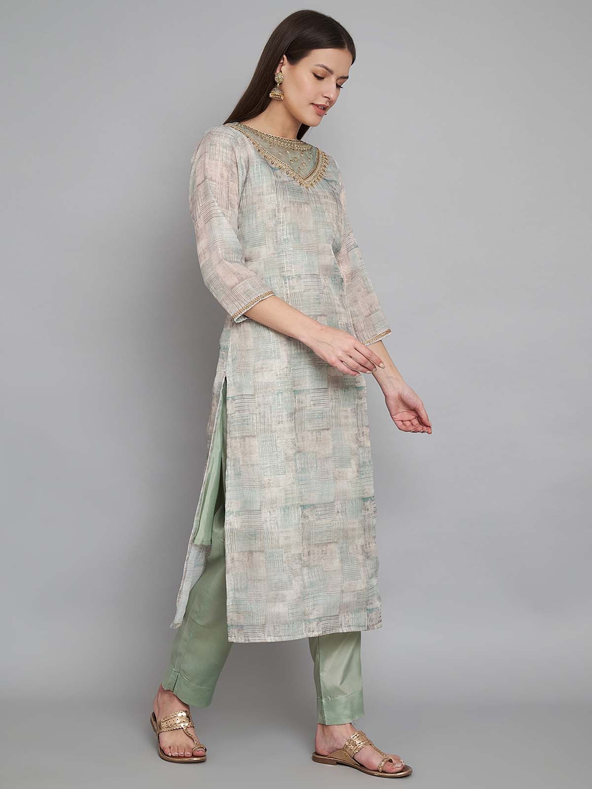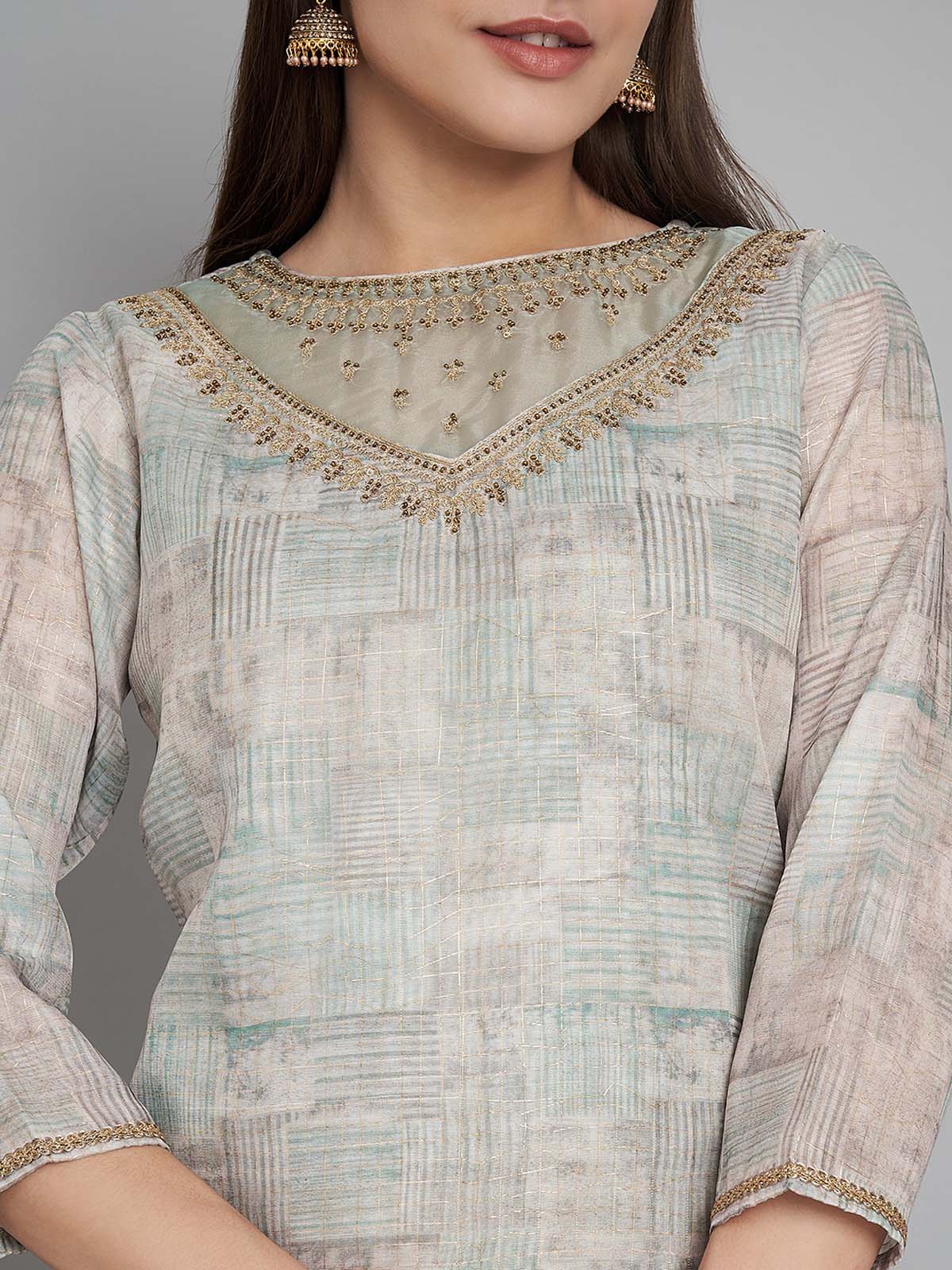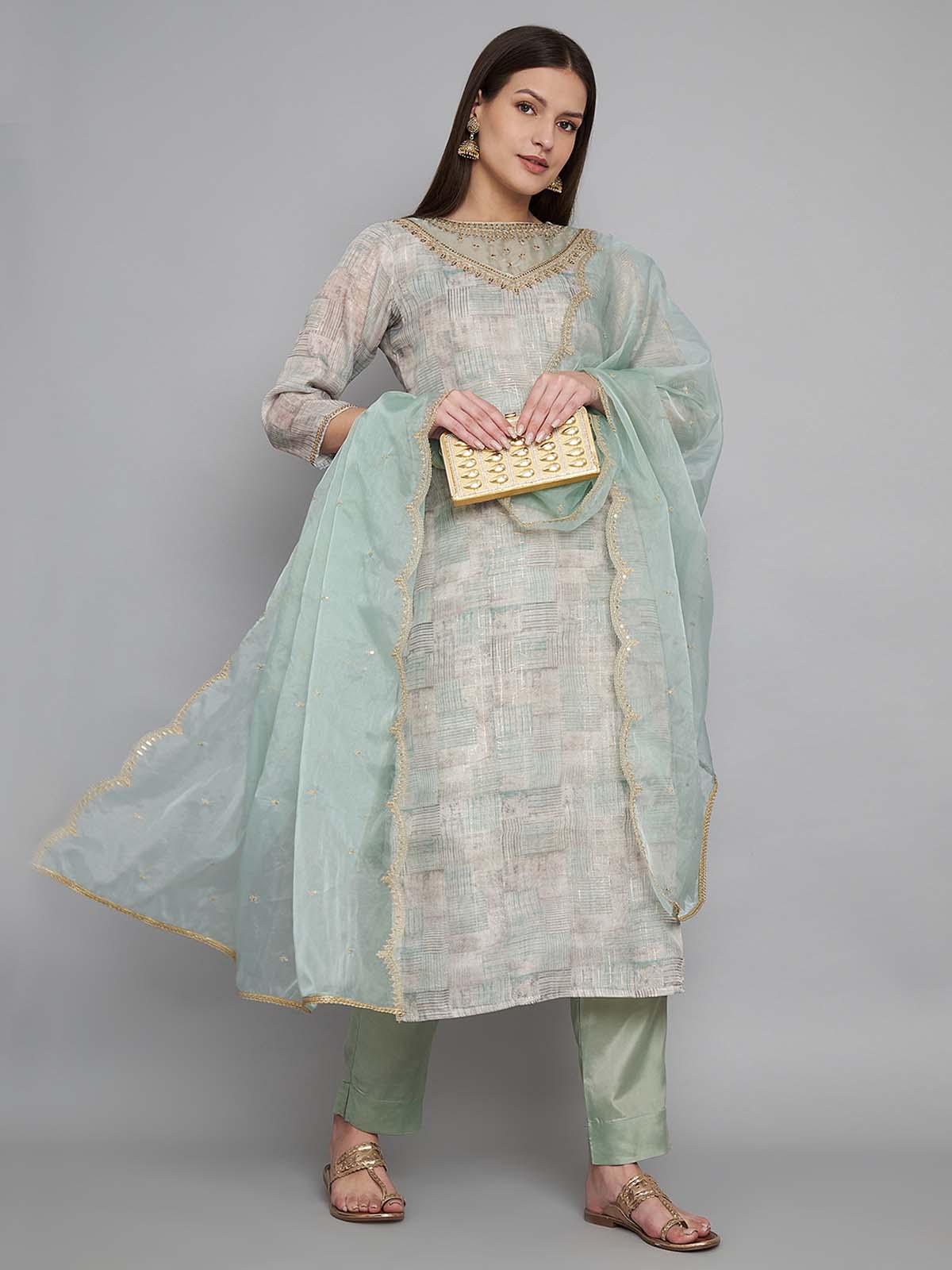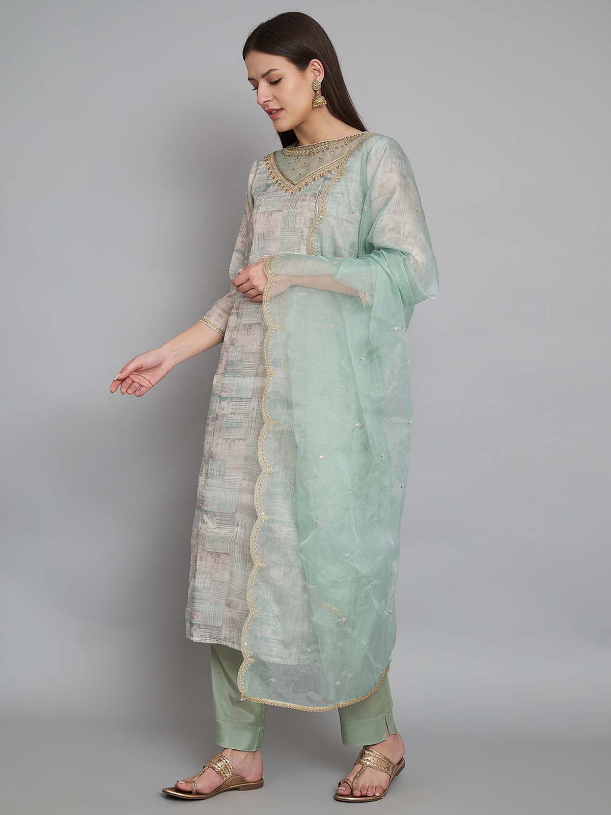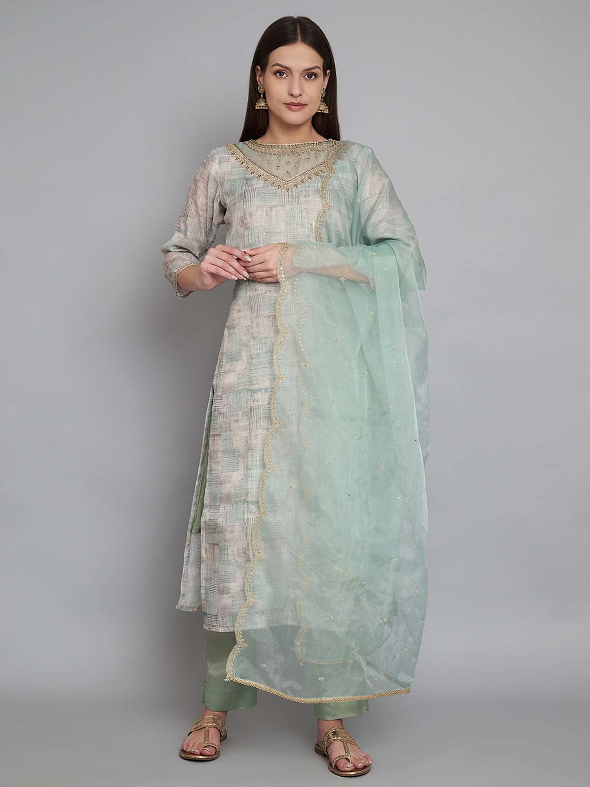 Label khoj double neck Kurta with Trousers & With Dupatta