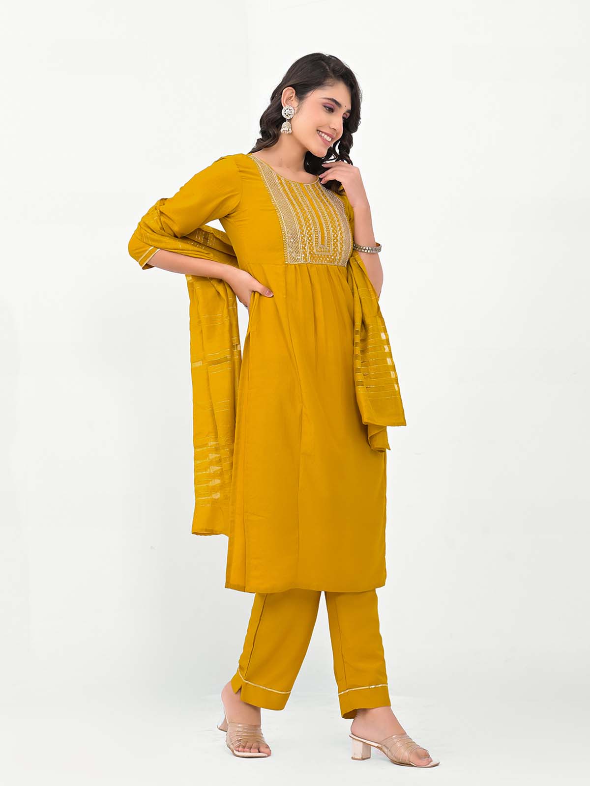 Label khoj Embroidered Work Kurta with Trousers & With Dupatta