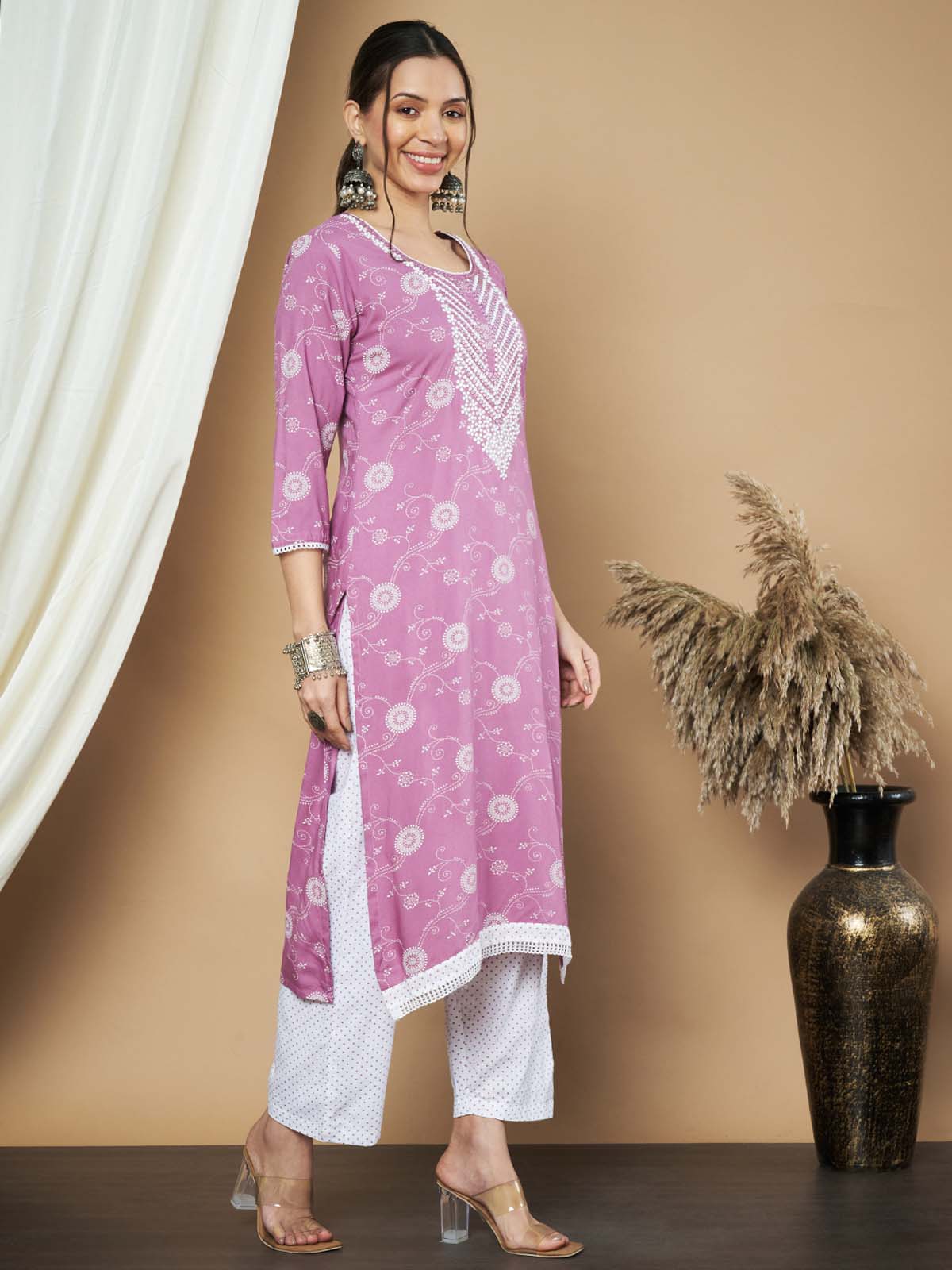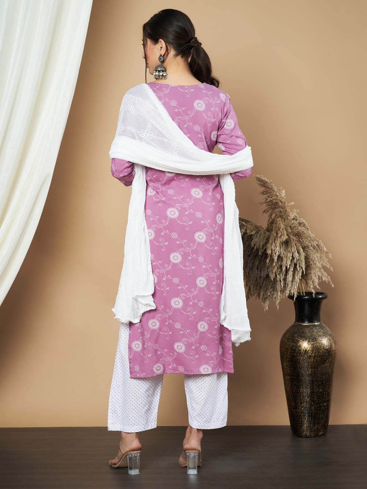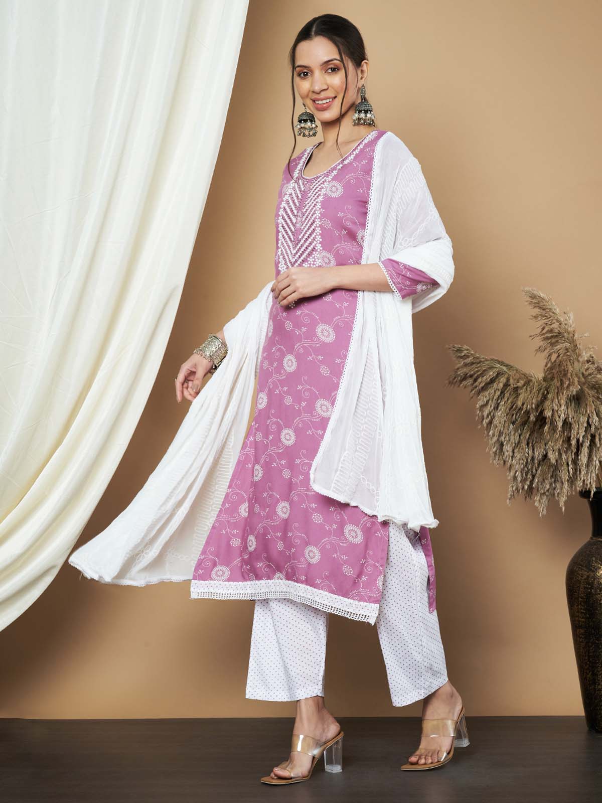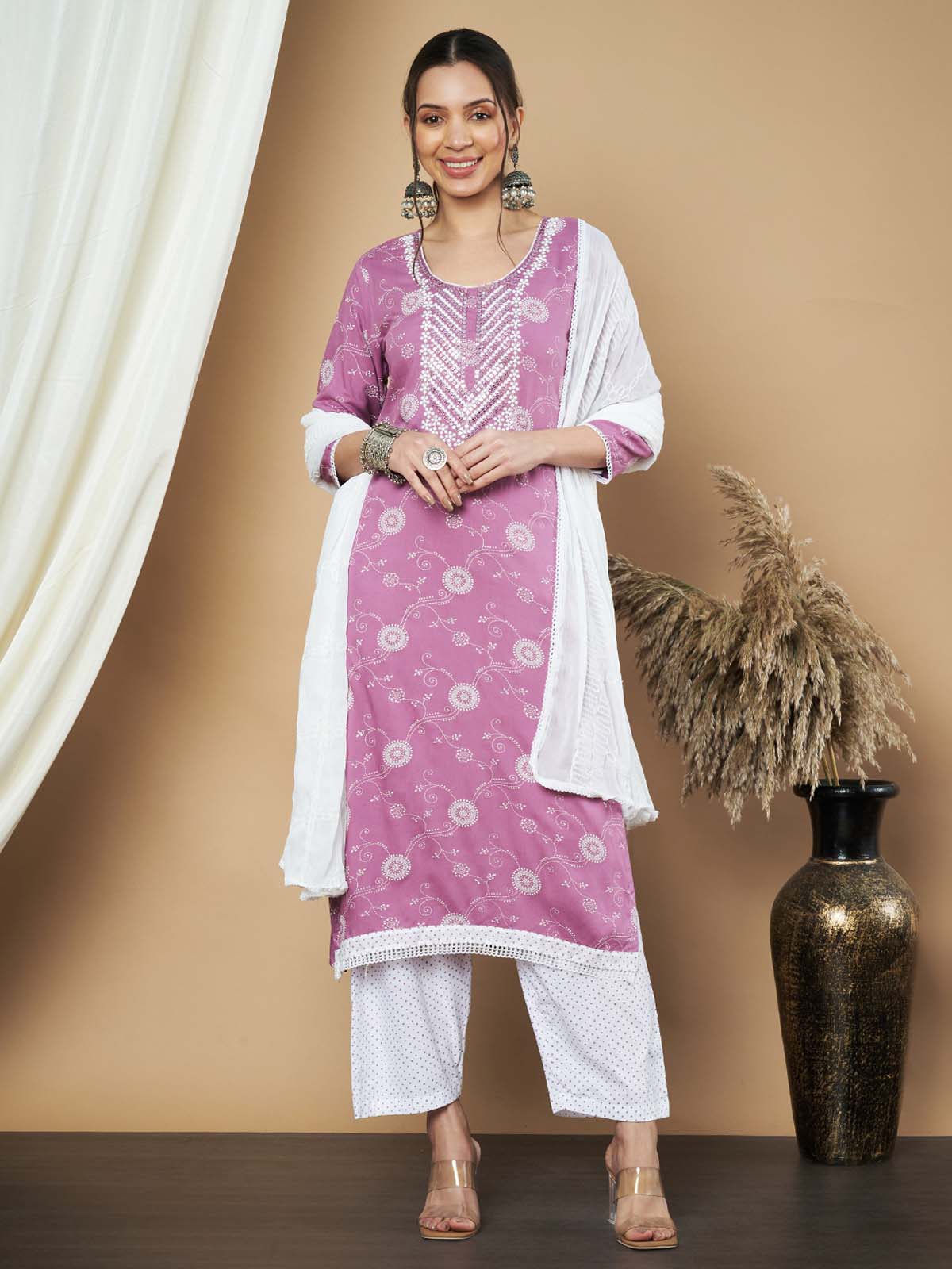 Label Khoj Ethnic Motifs Printed Sequins Embroidered Work Kurta,Trouser With dupptta