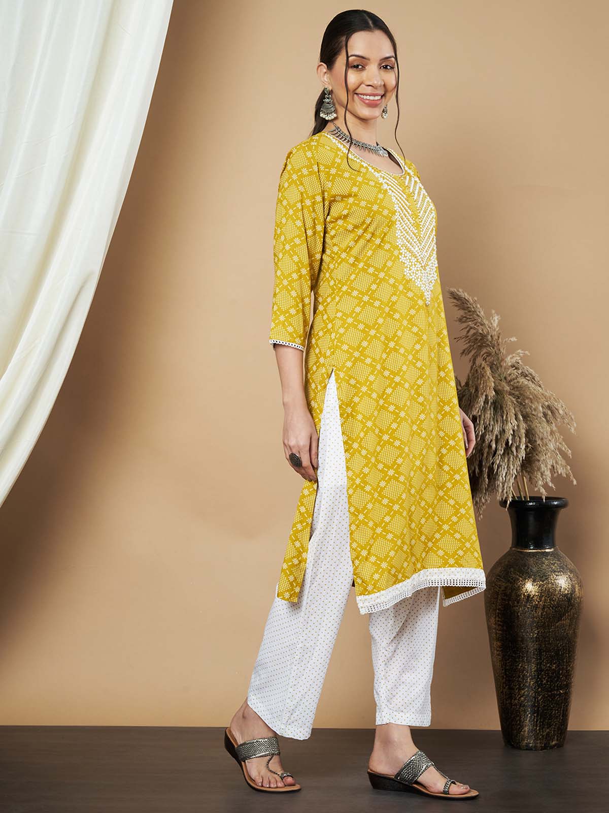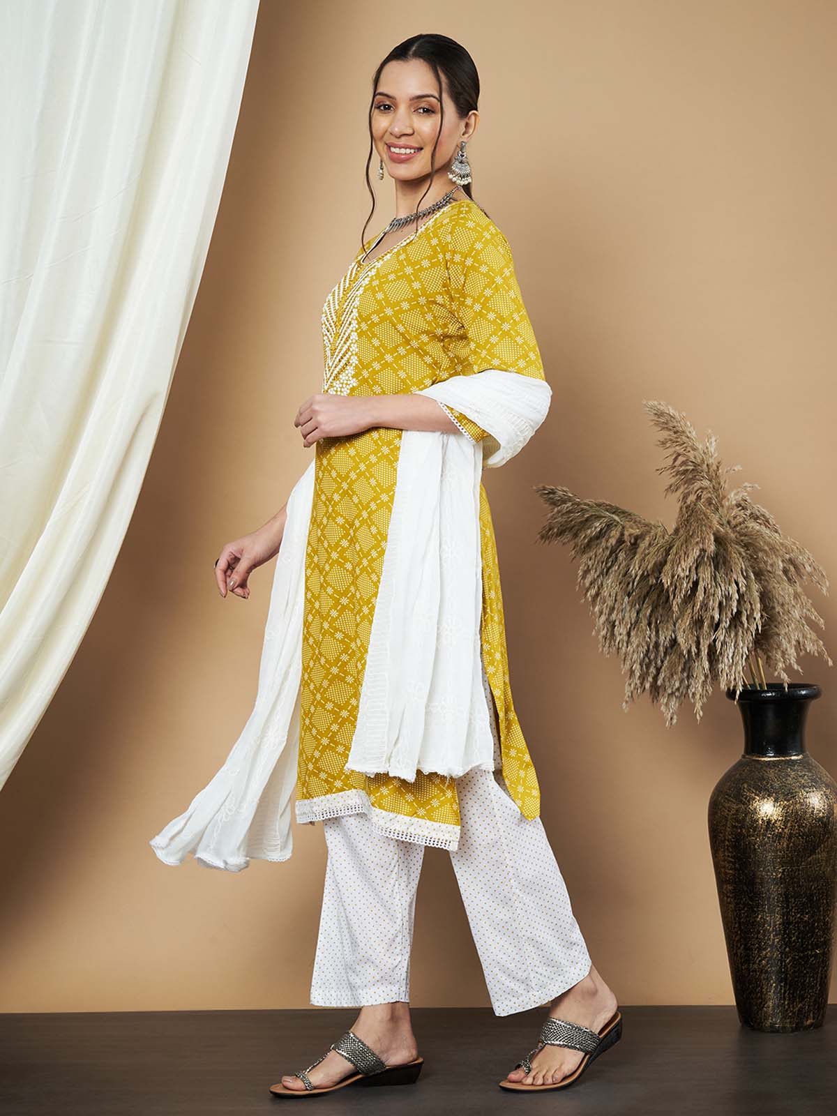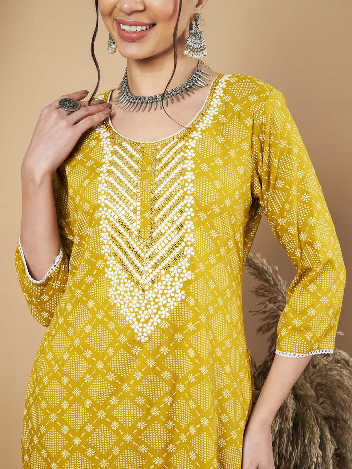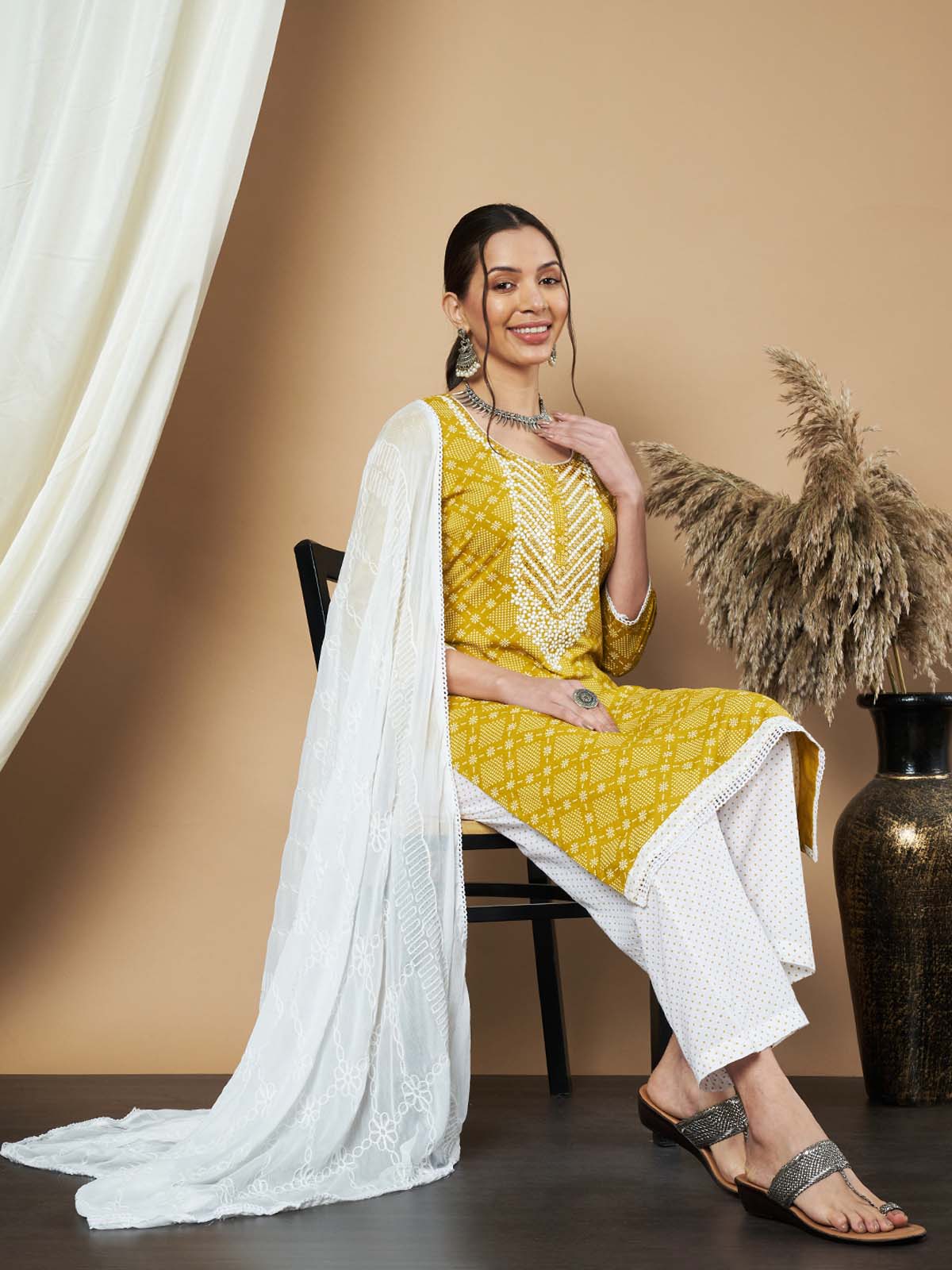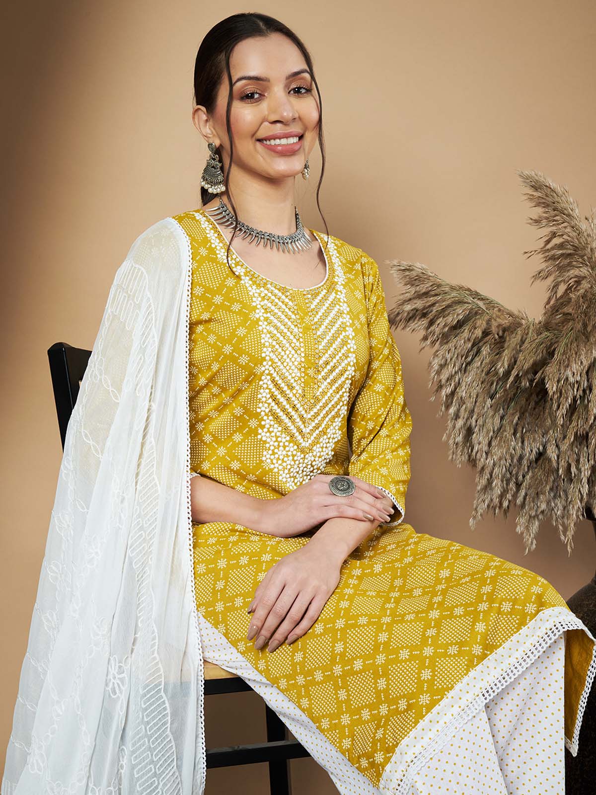 Label Khoj Ethnic Motifs Printed Sequins Embroidered Work Kurta,Trouser With dupptta
