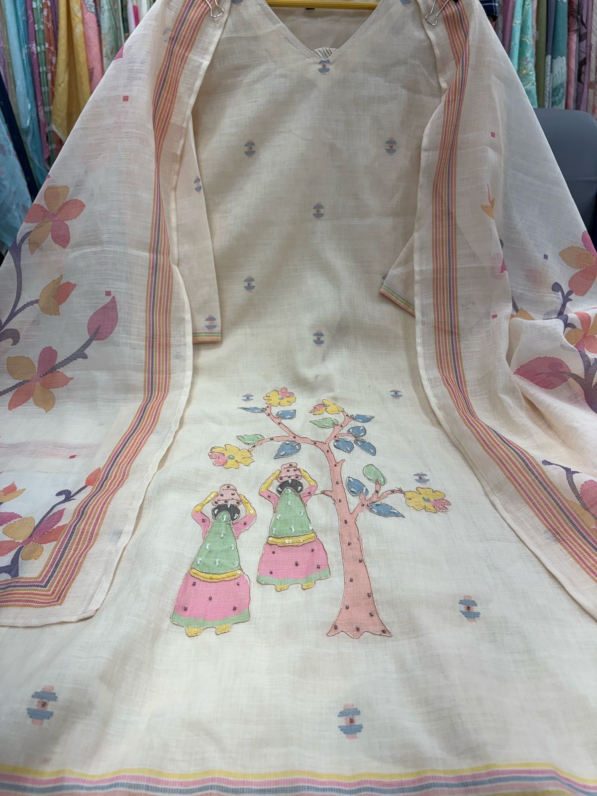 Label khoj lilen kurta , trouser and dupptta set