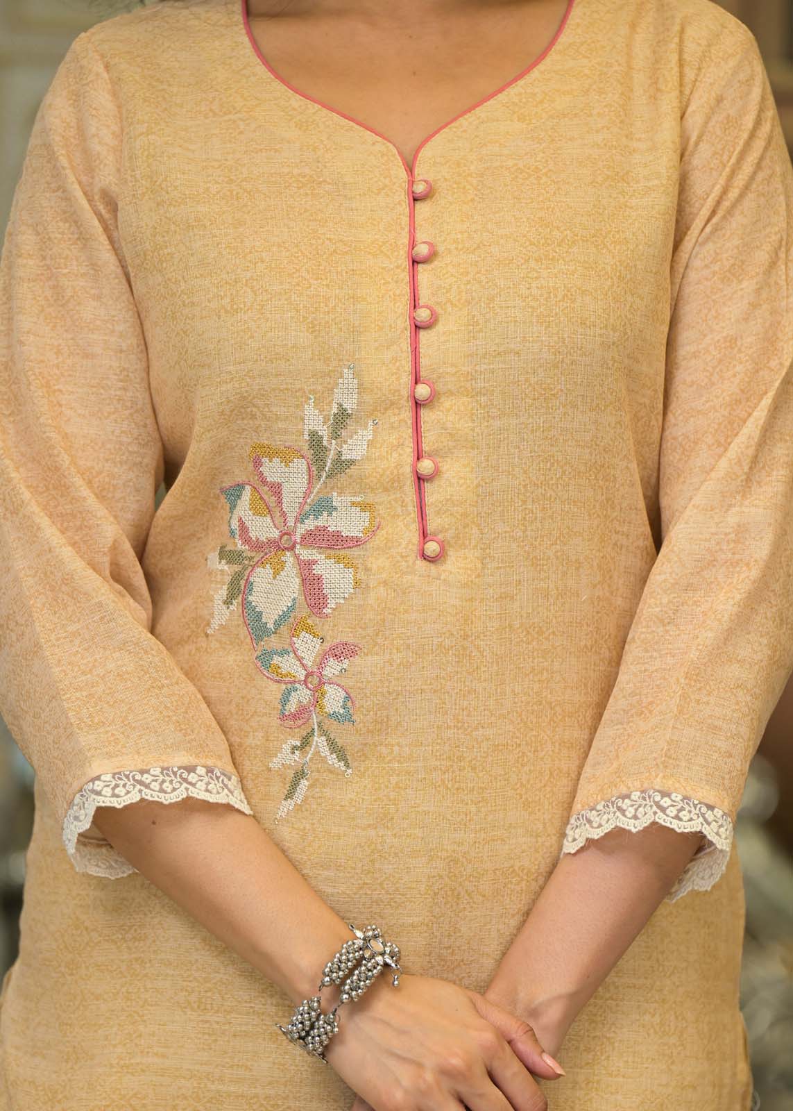 - Floral embroidered