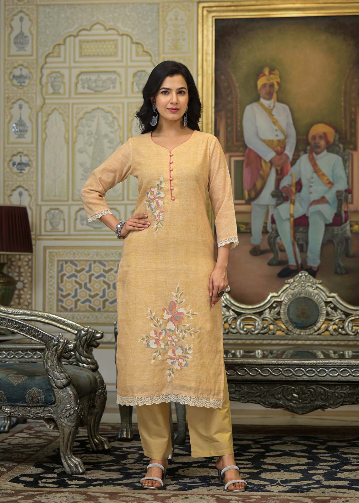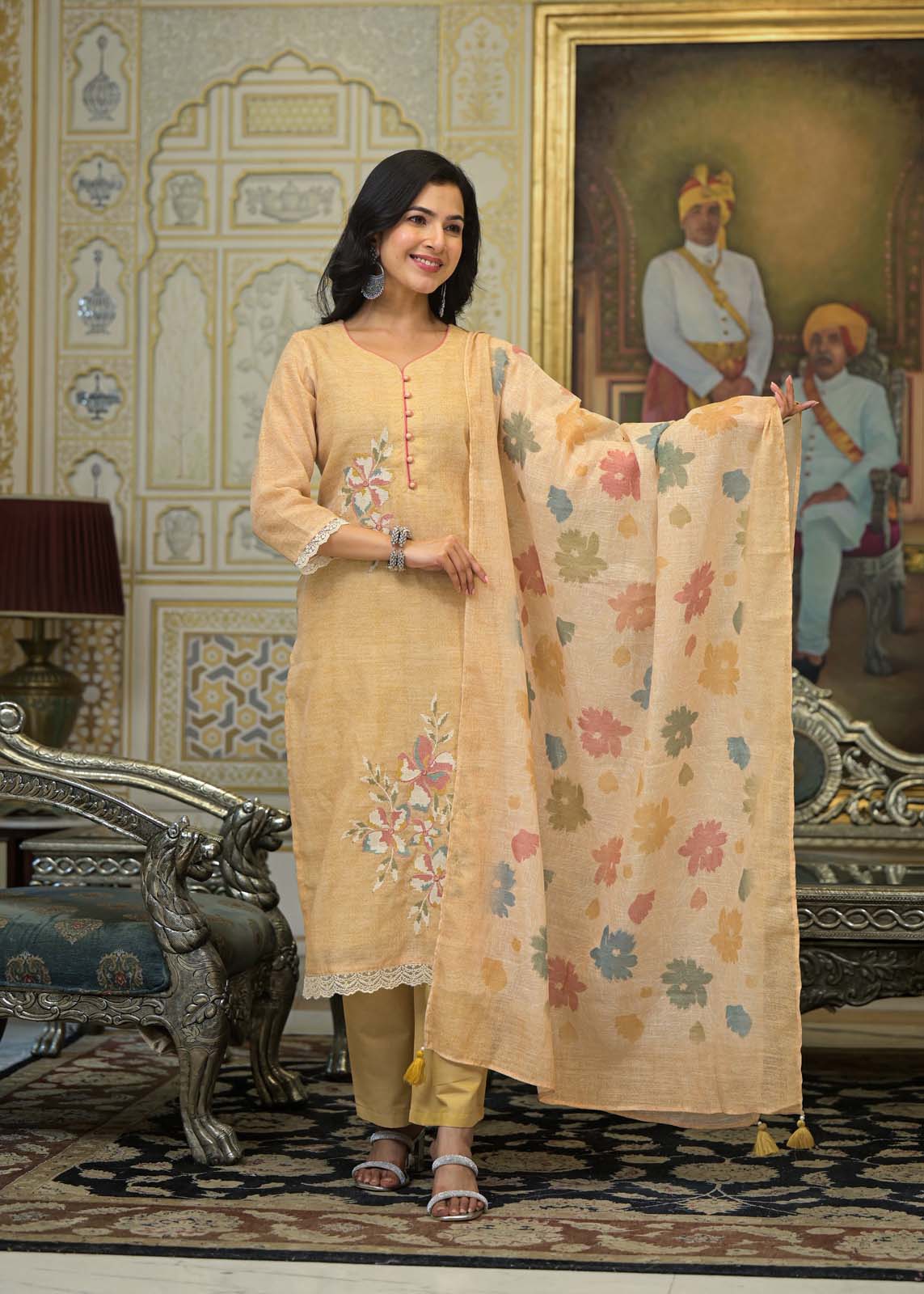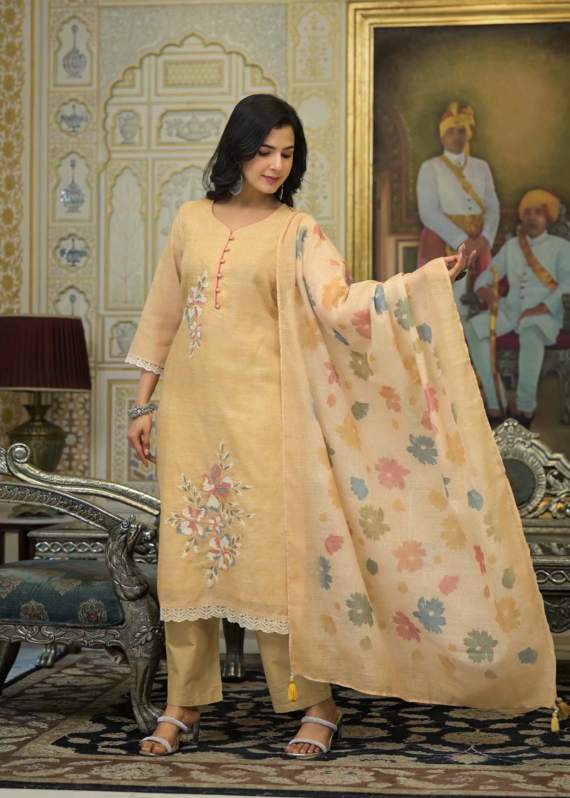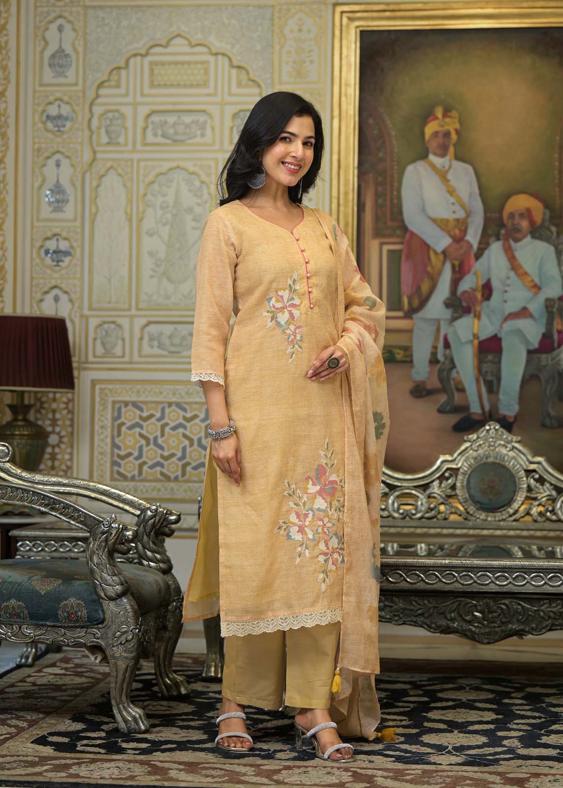 Label khoj lilen kurta , trouser and dupptta set