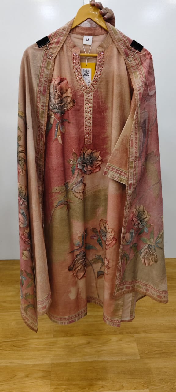 Label khoj Maslin shimmer kurta , trouser and dupptta set