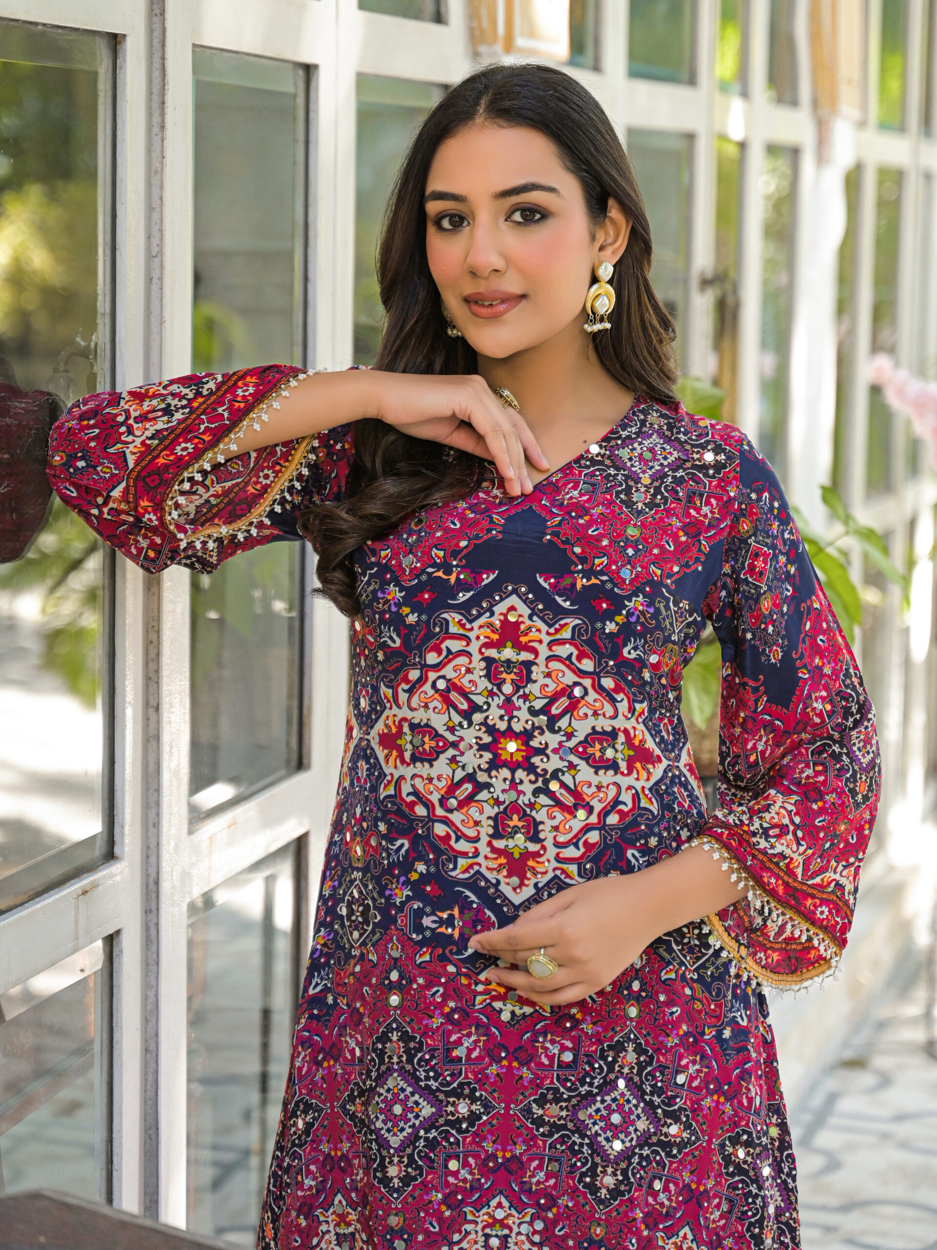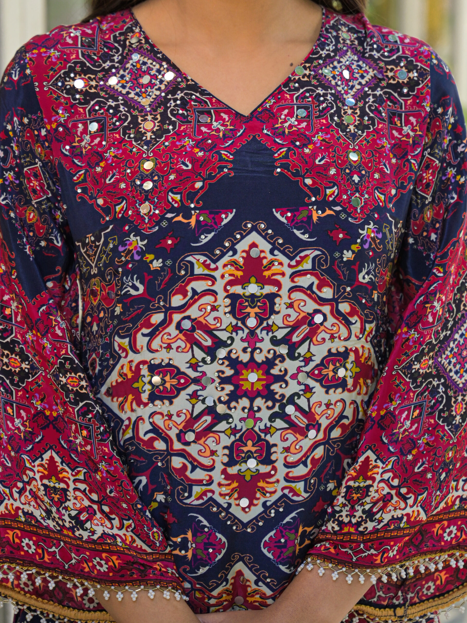 - Top and Bottom natural crepe print