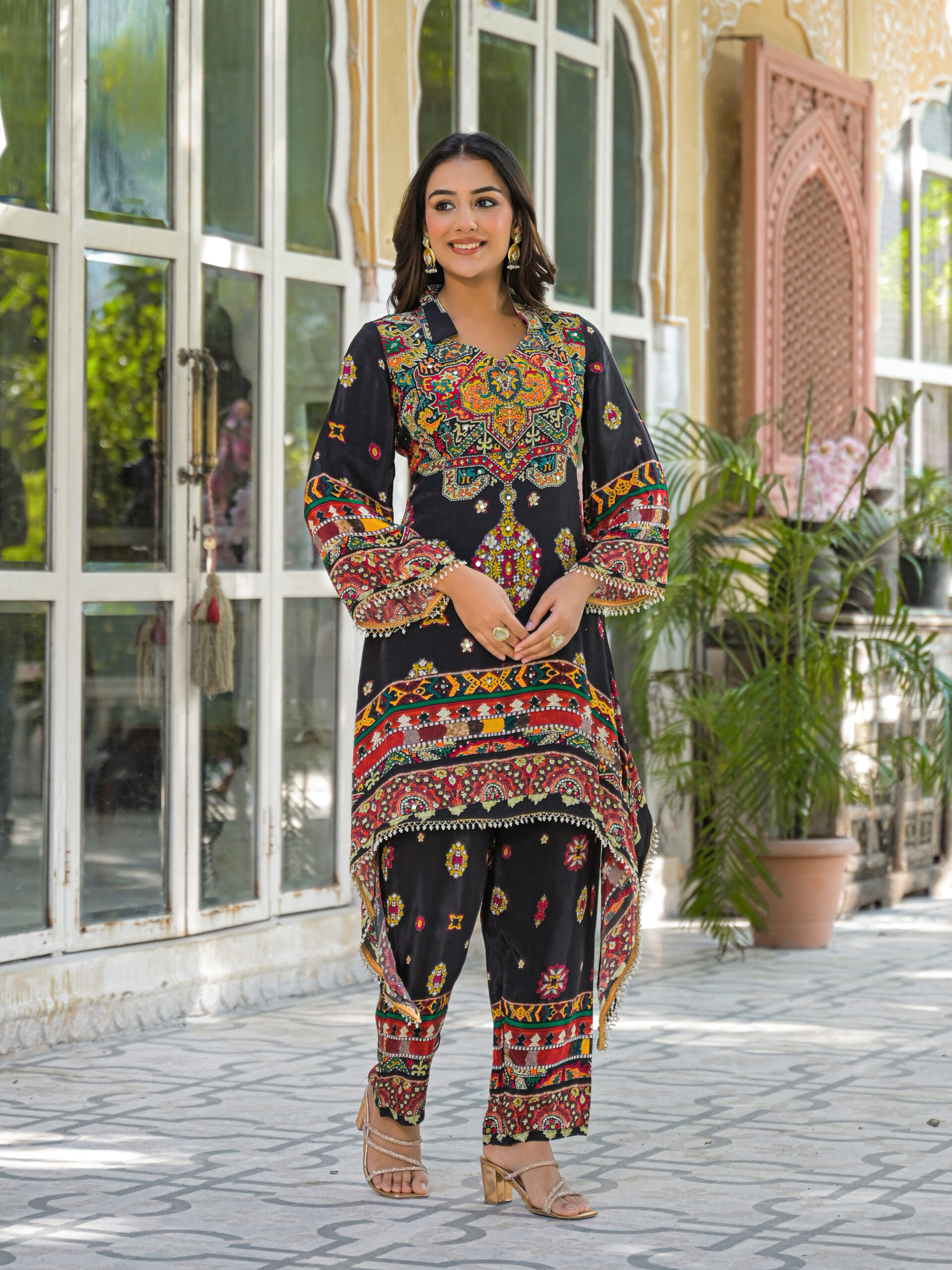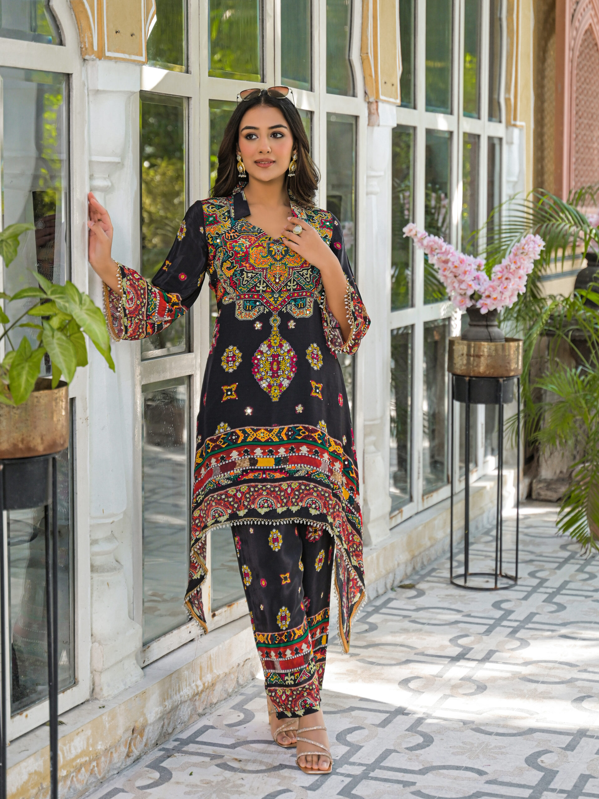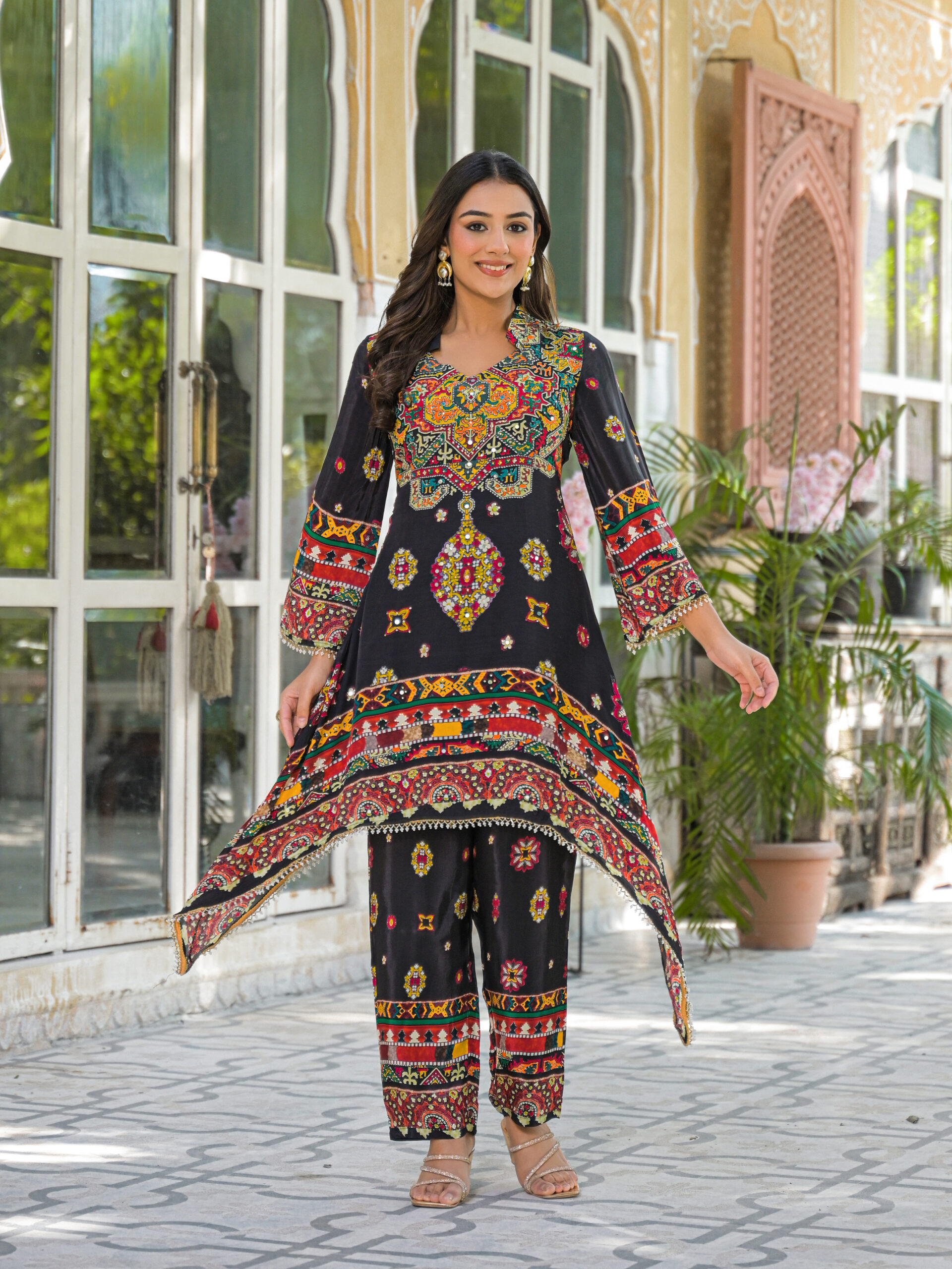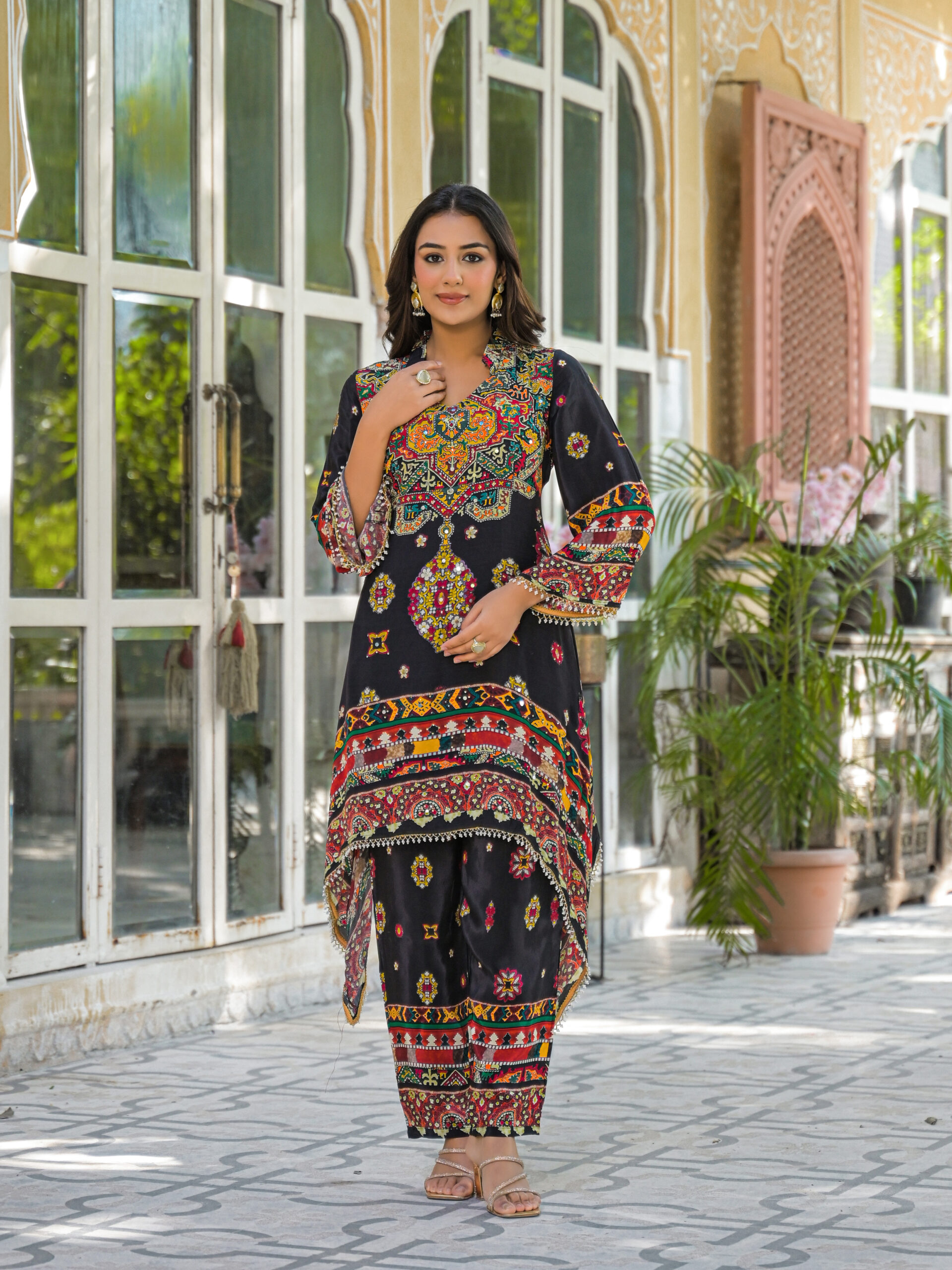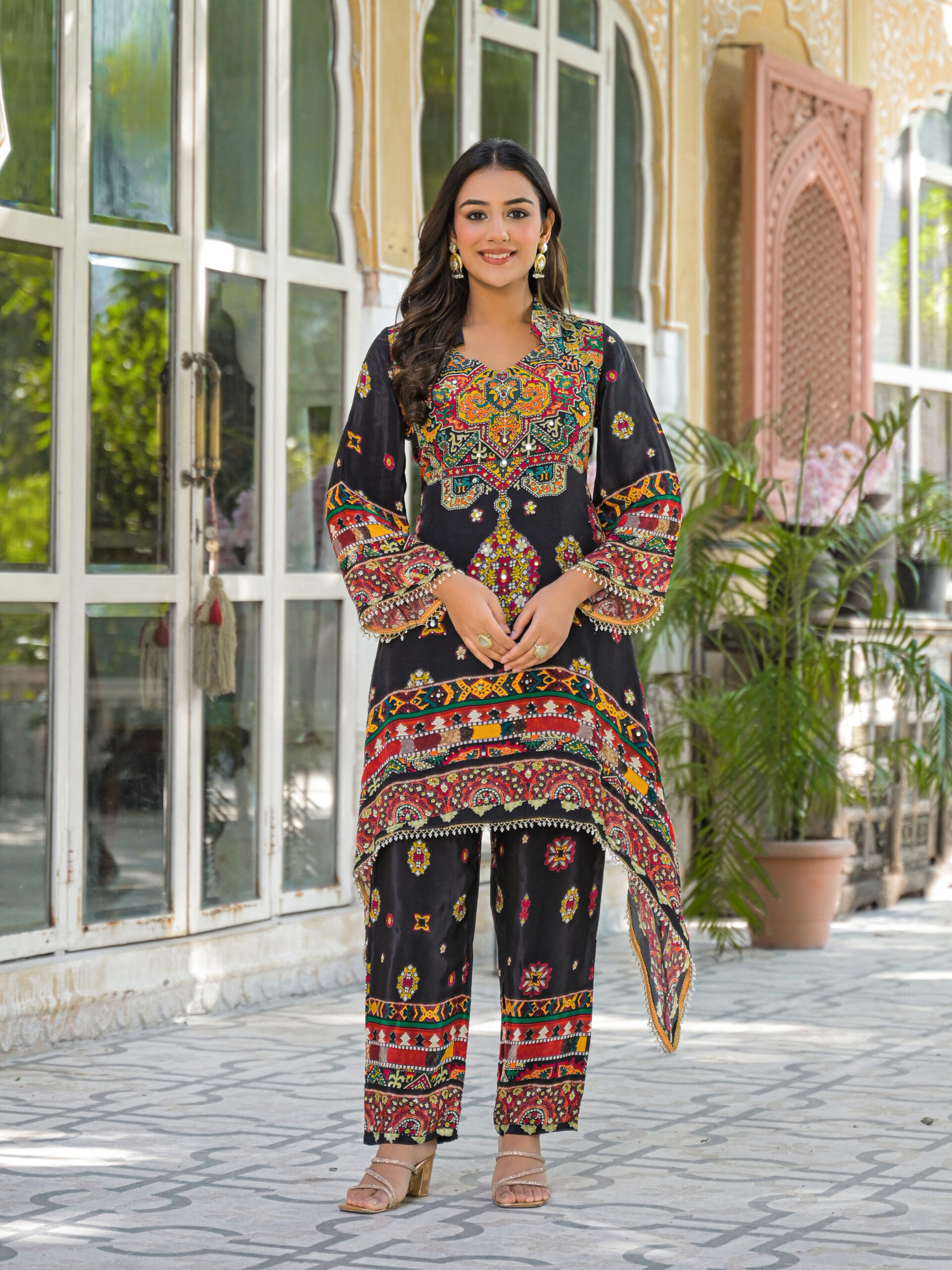 Label khoj Natural crepe with hand work Two piece