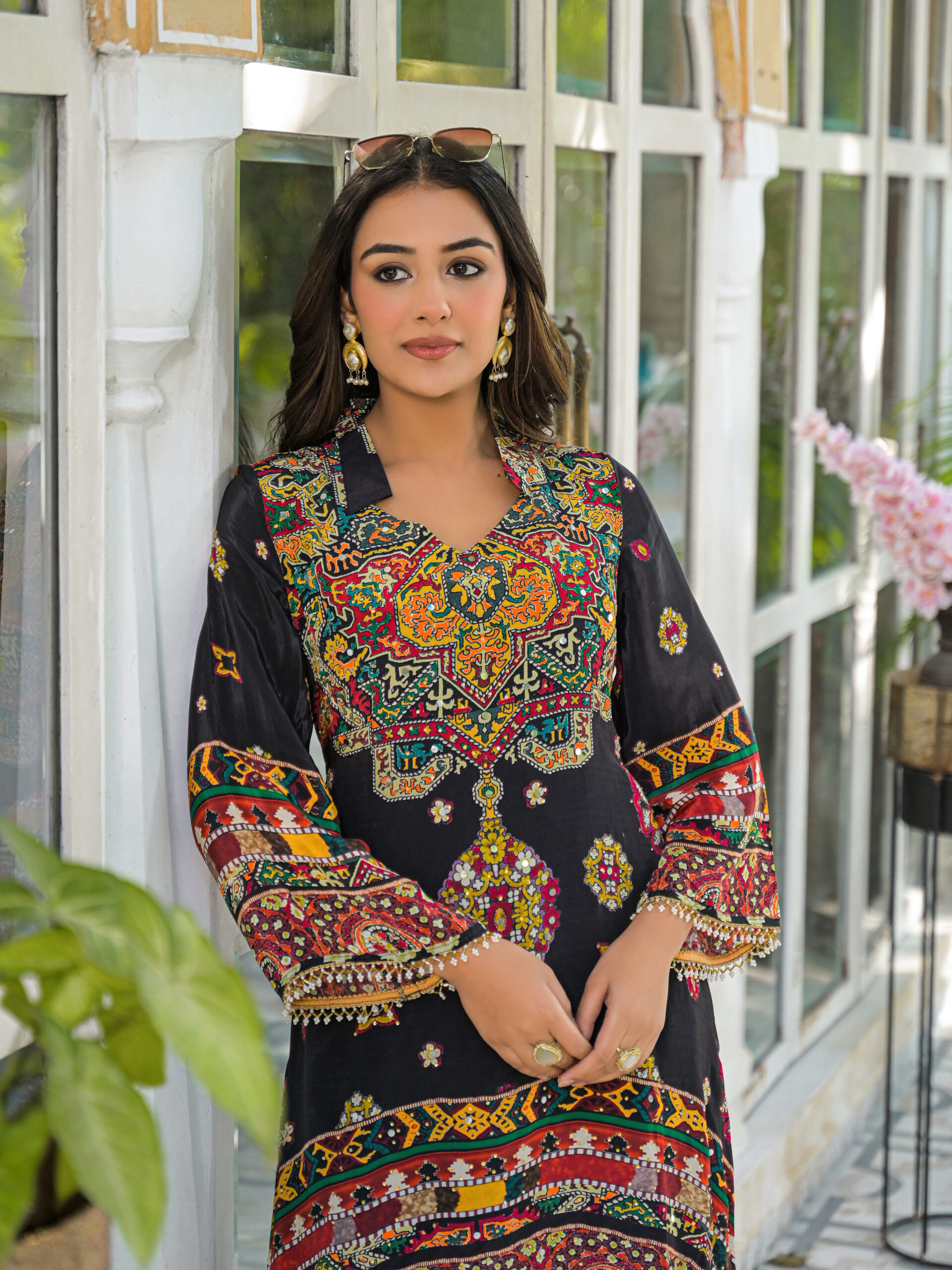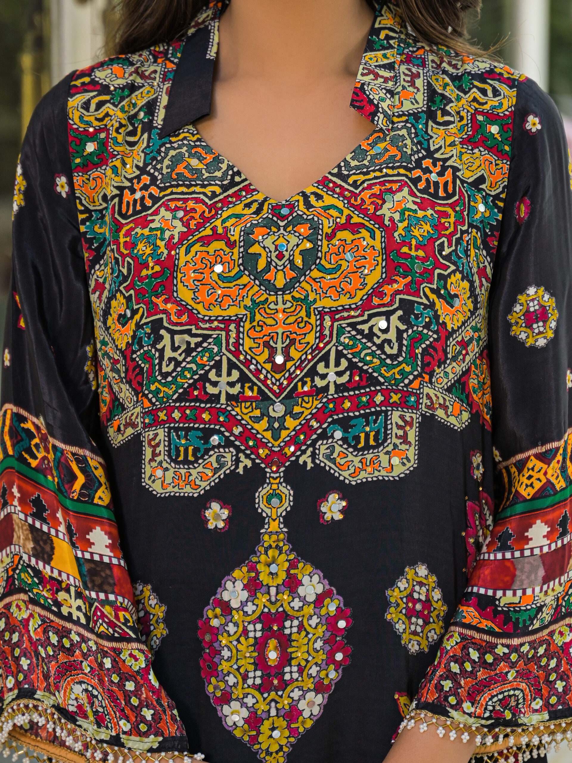 - Top and Bottom natural crepe print