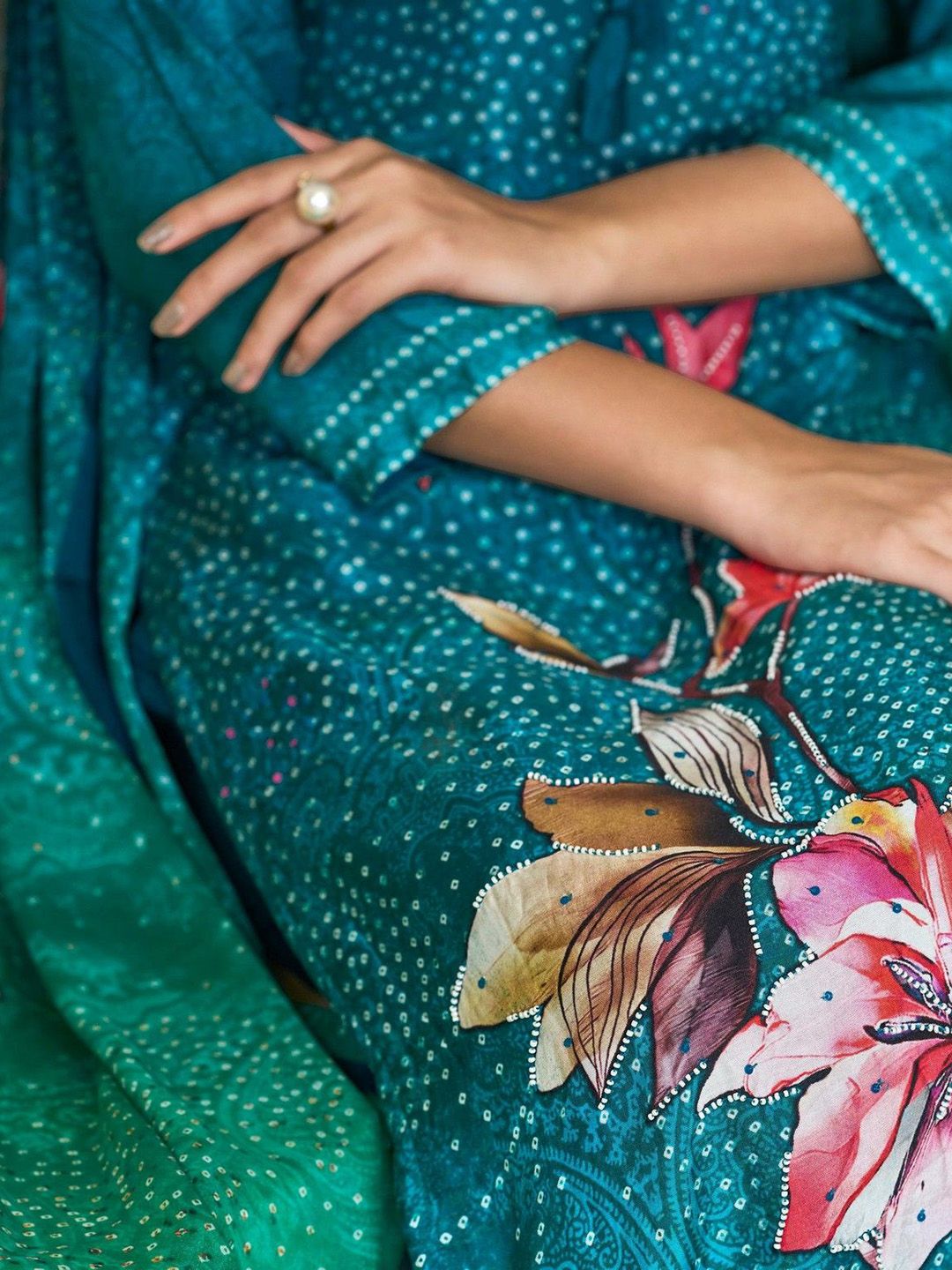 Label khoj Pure viscose Maslin with hand work kurta set