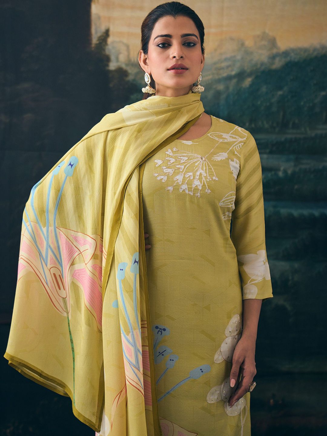 Label khoj Pure viscose maslin with hand work Kurta ,trouser and dupptta setpista Color