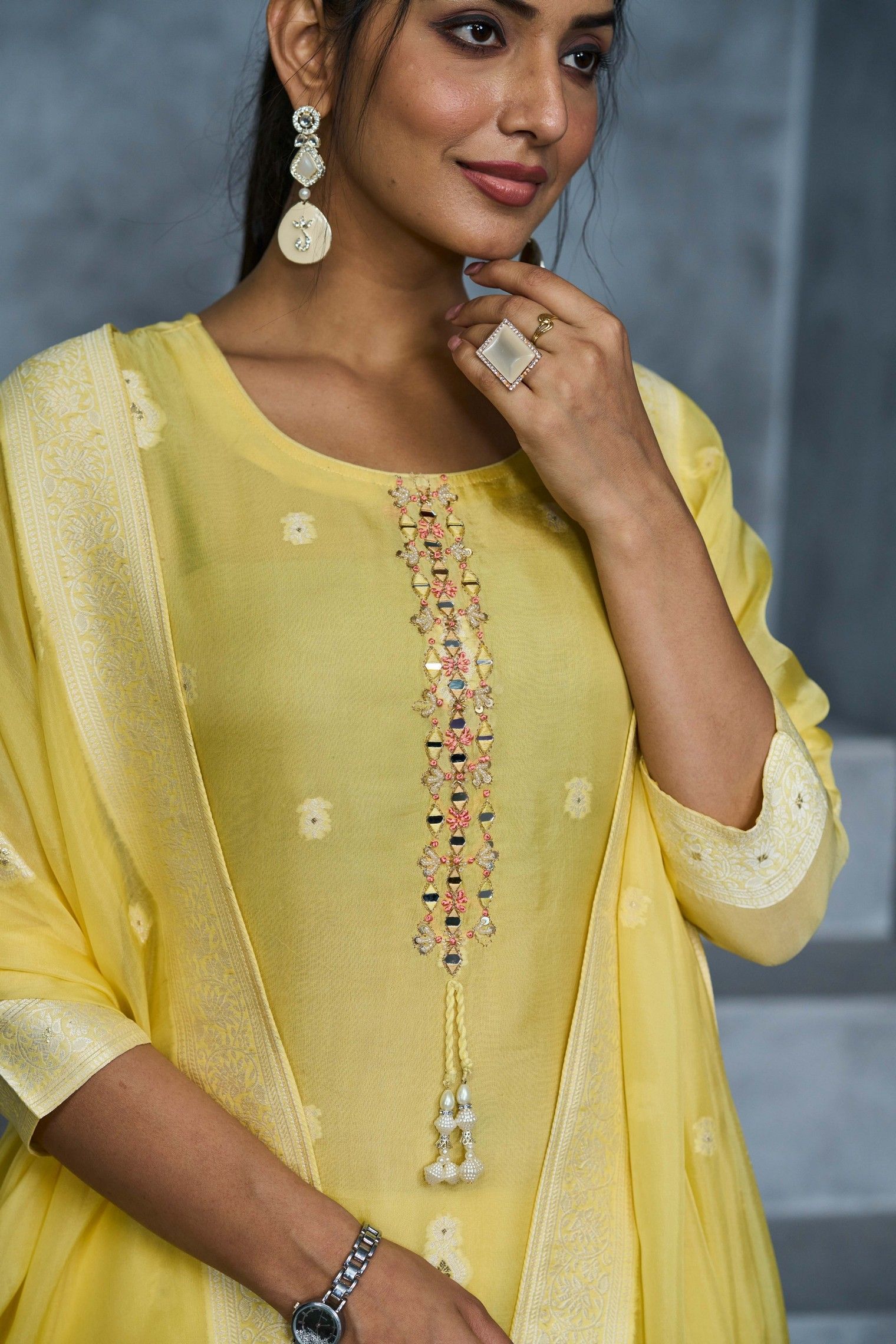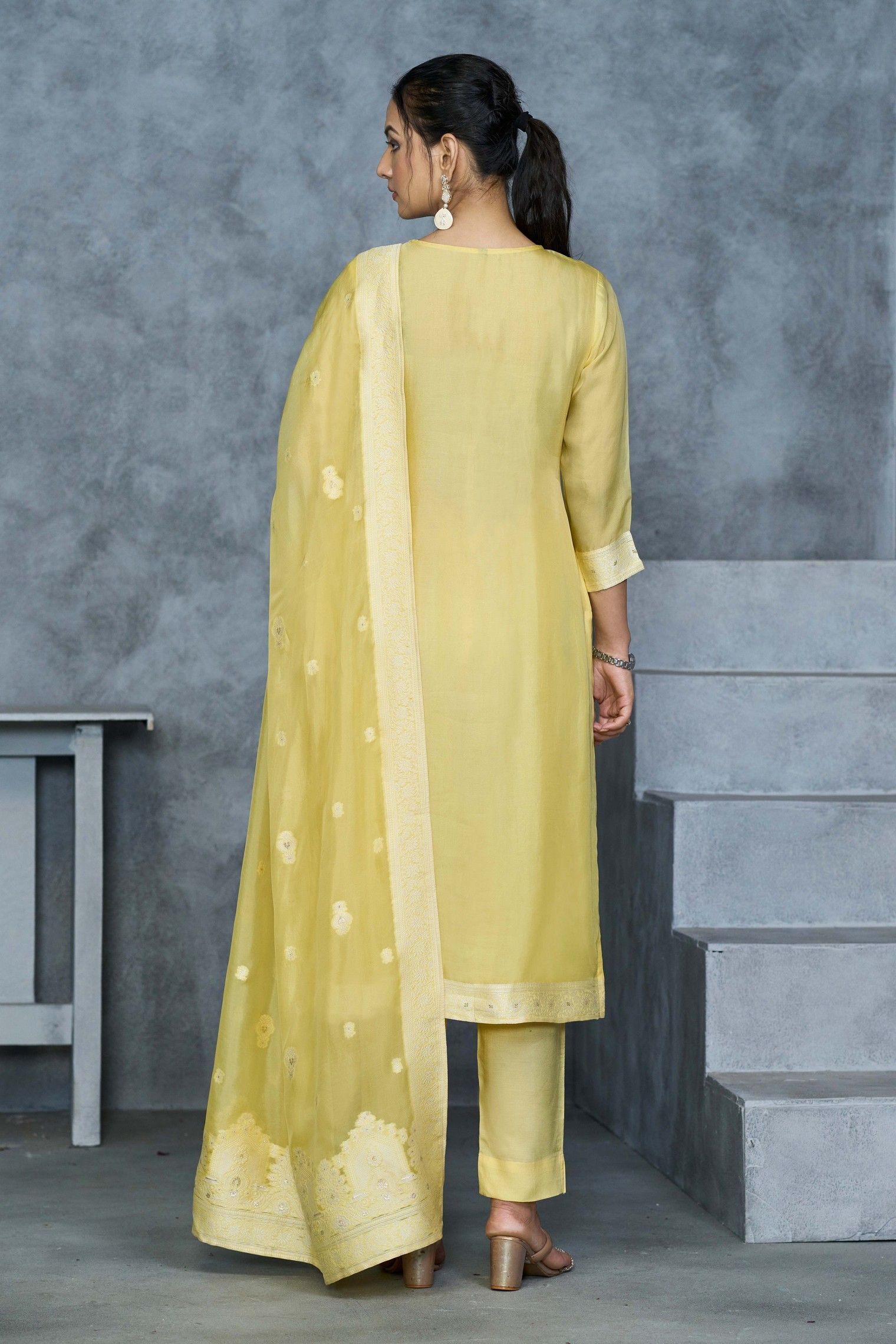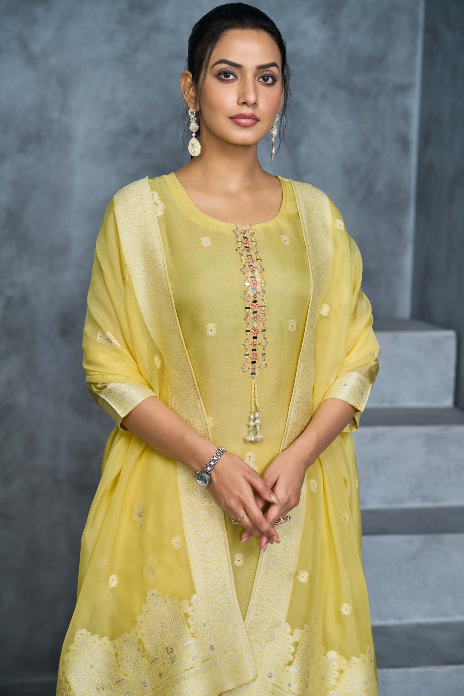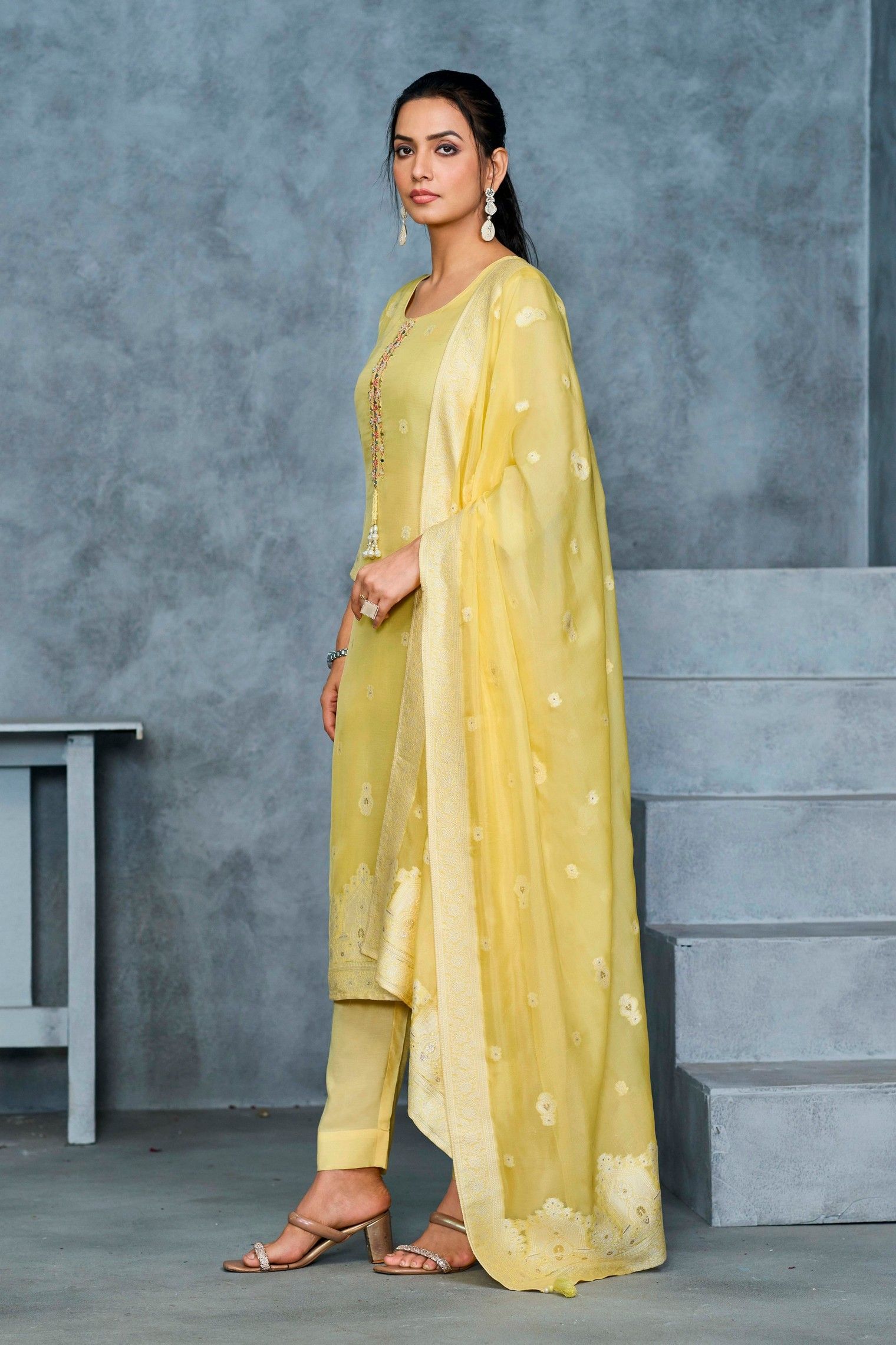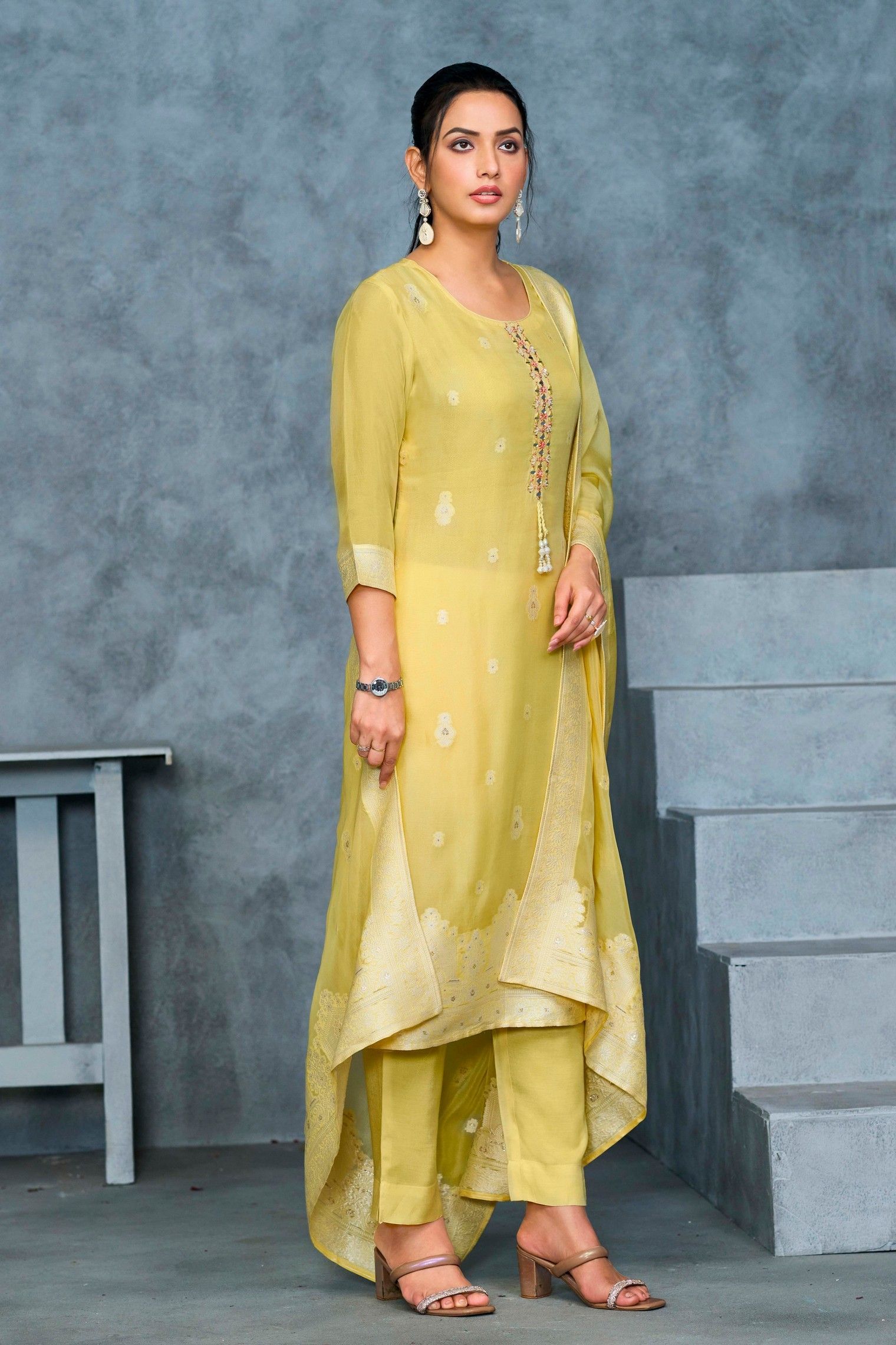 Label khoj Pure viscose organza jacqured with hand work kurta set