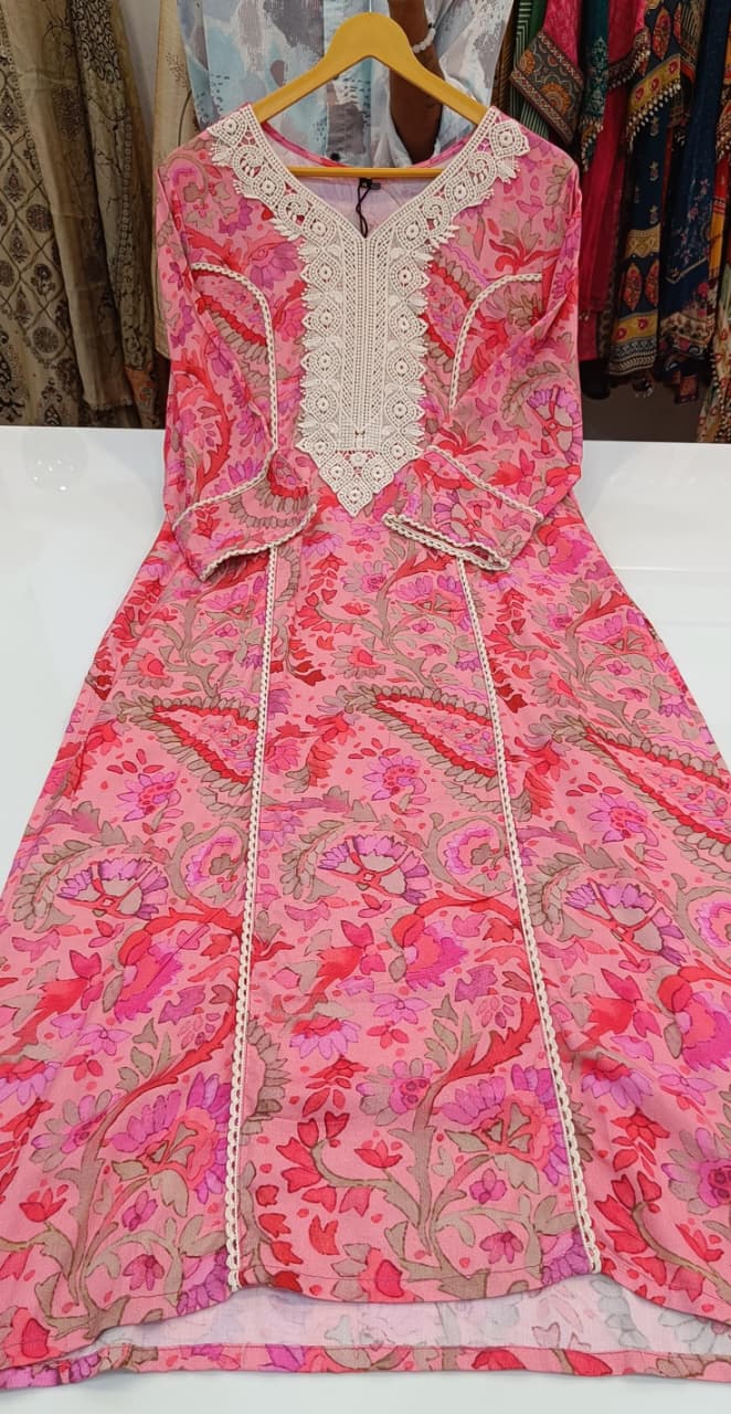 Label khoj viscose rayon printed kurti and sleeve lace