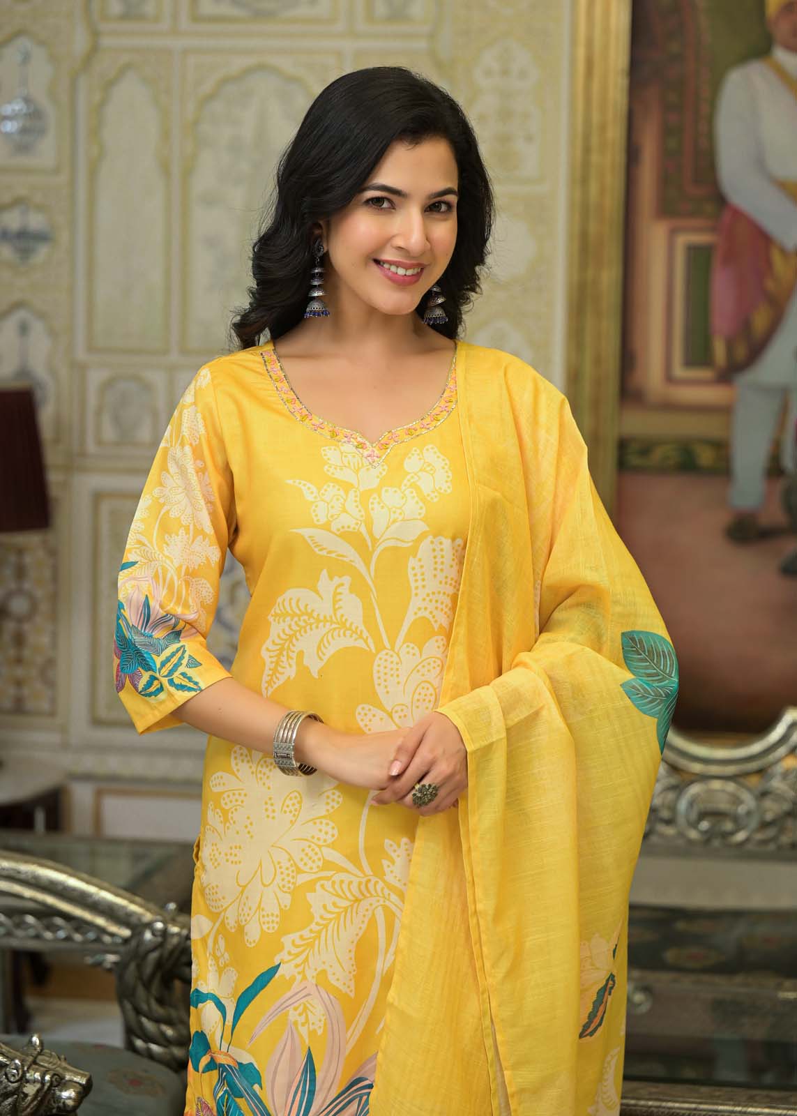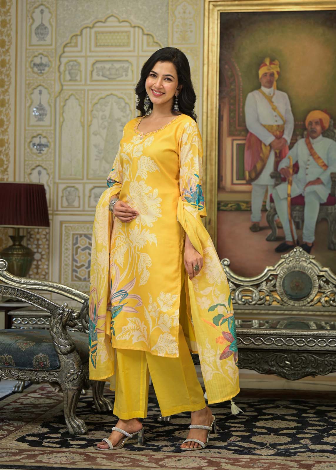 Label Khoj Women Linen kurta, trouser and dupptta set