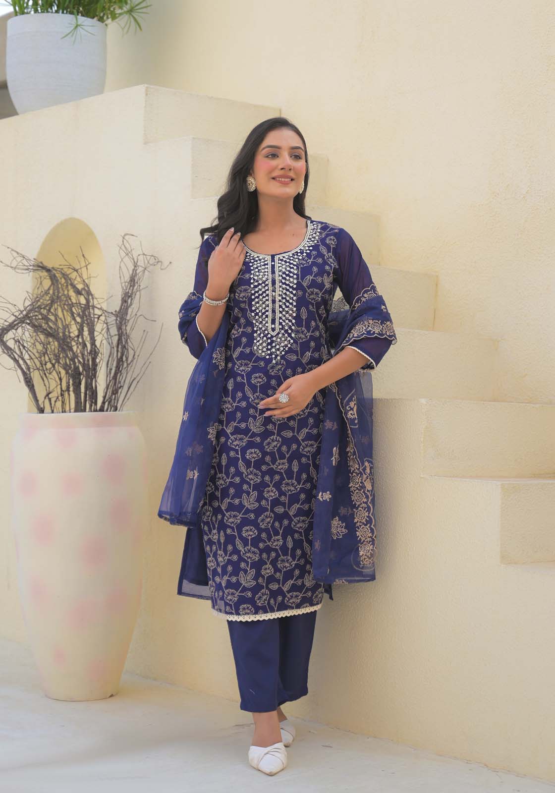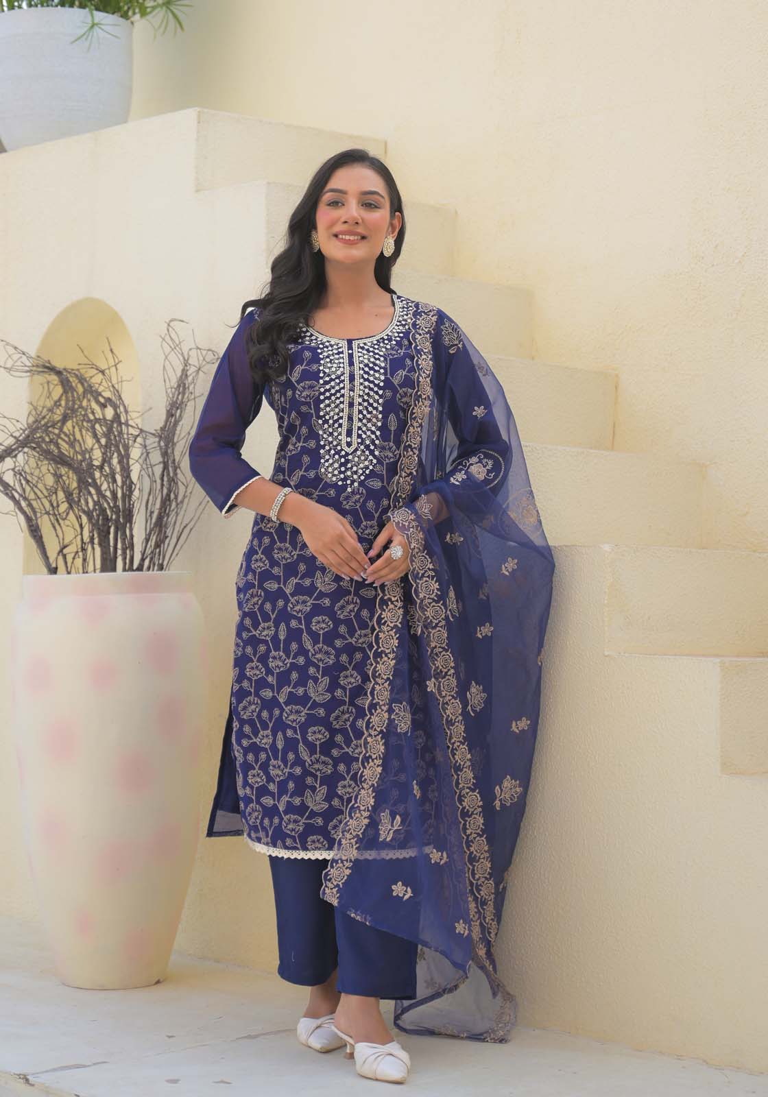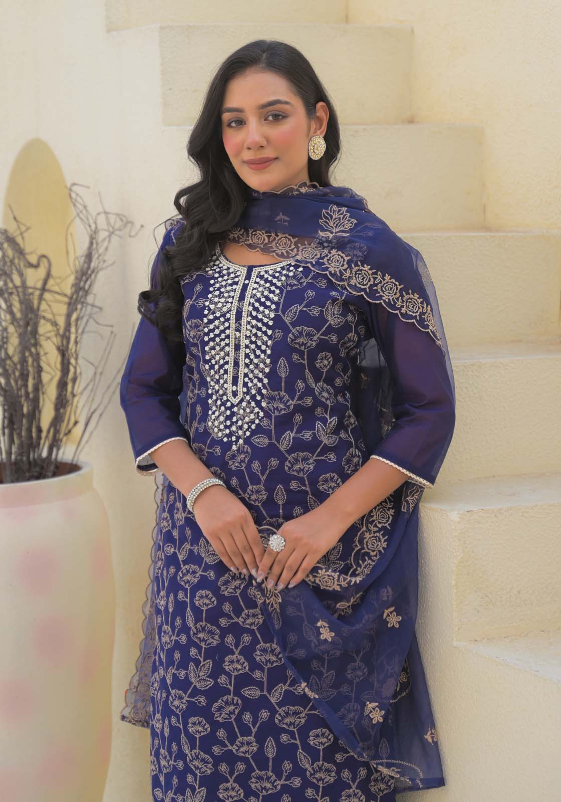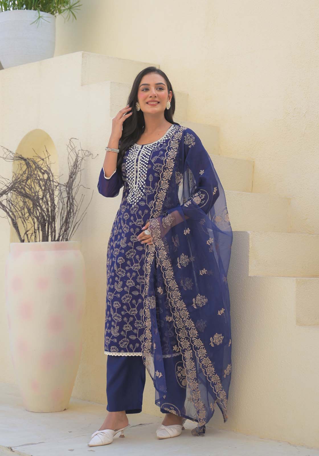 Label Khoj Women Chanderi kurta, trouser and dupptta set