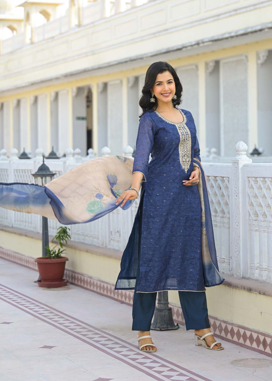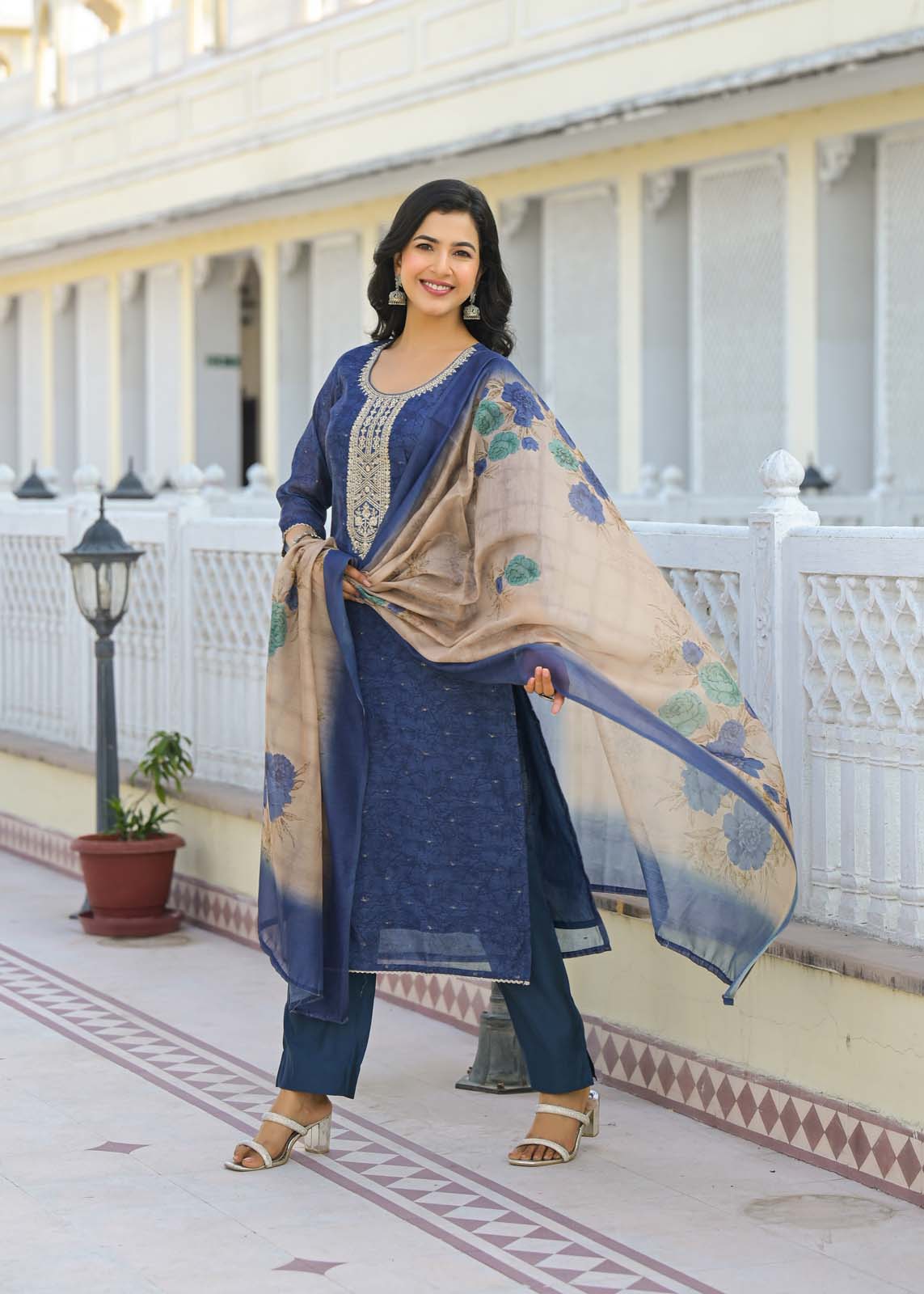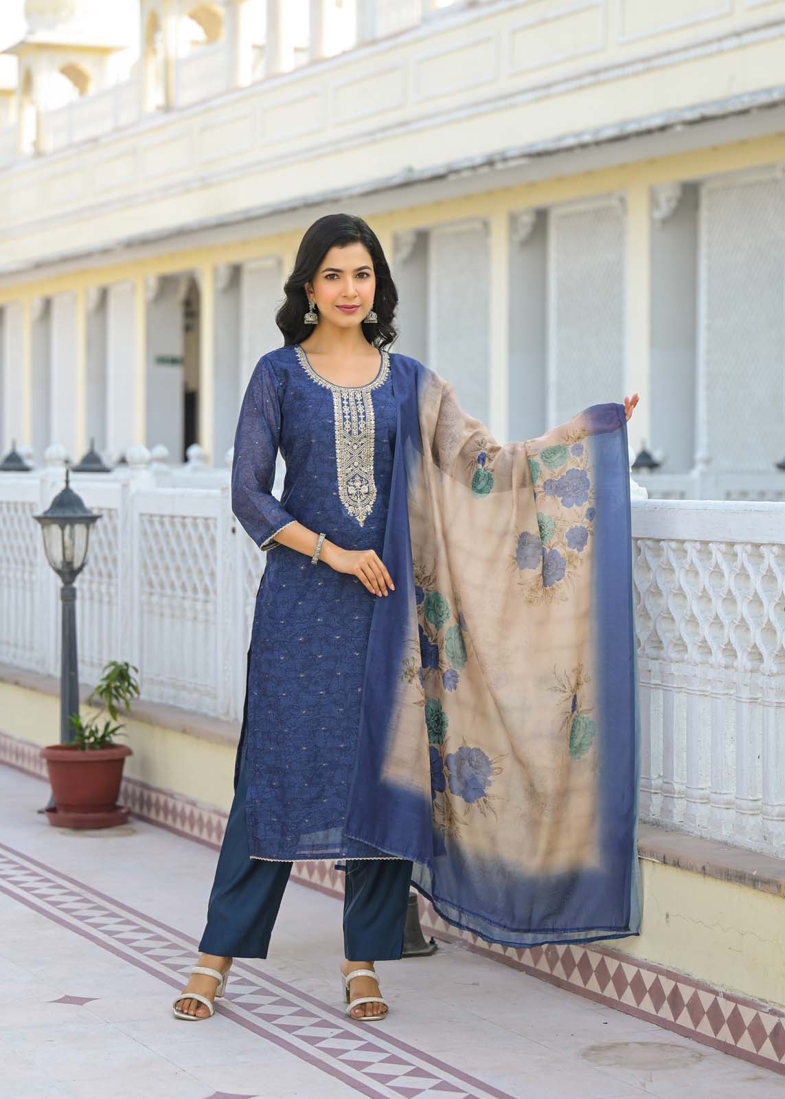 - it pairs perfectly with solid pants and a matching dupatta,