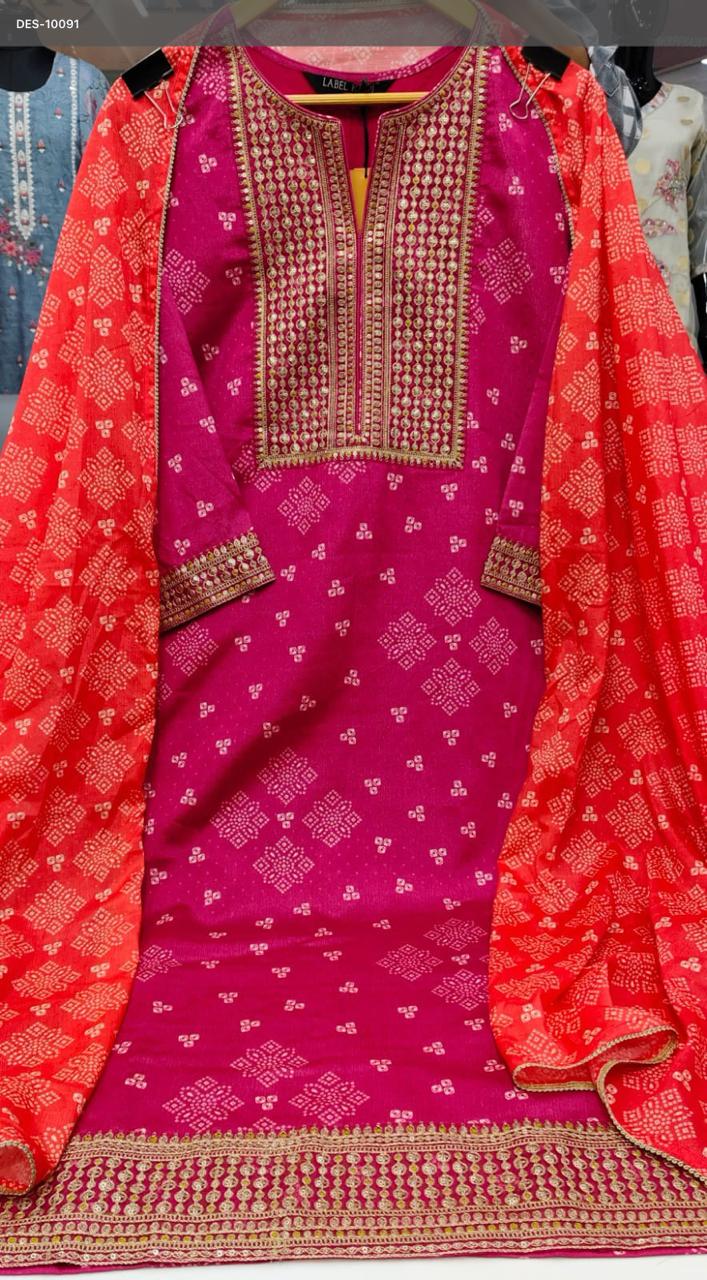 Label Khoj Women Chinon print kurta, trouser and dupptta set