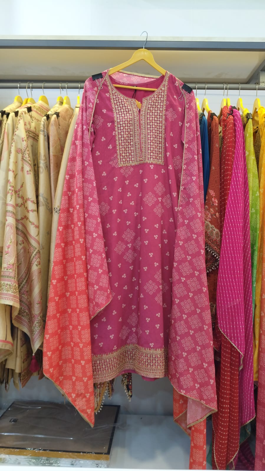 - Chinon print top with intricate embroidery on neck sleeves and daman