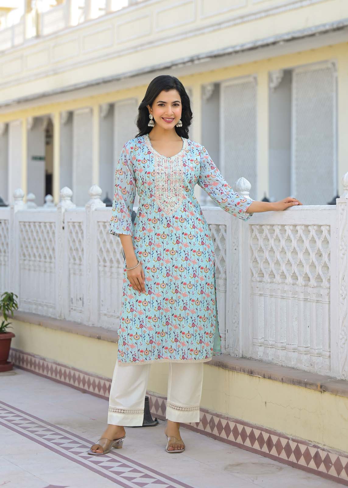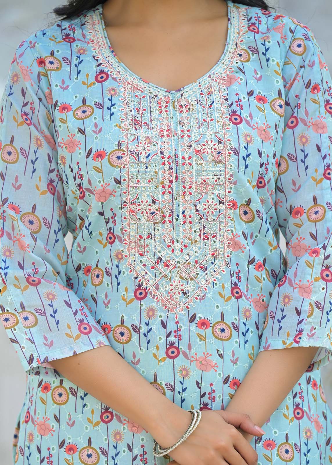 - Elevate your style with Label Khoj’s Women’s Rama Cotton Cifli Embroidered Kurta.