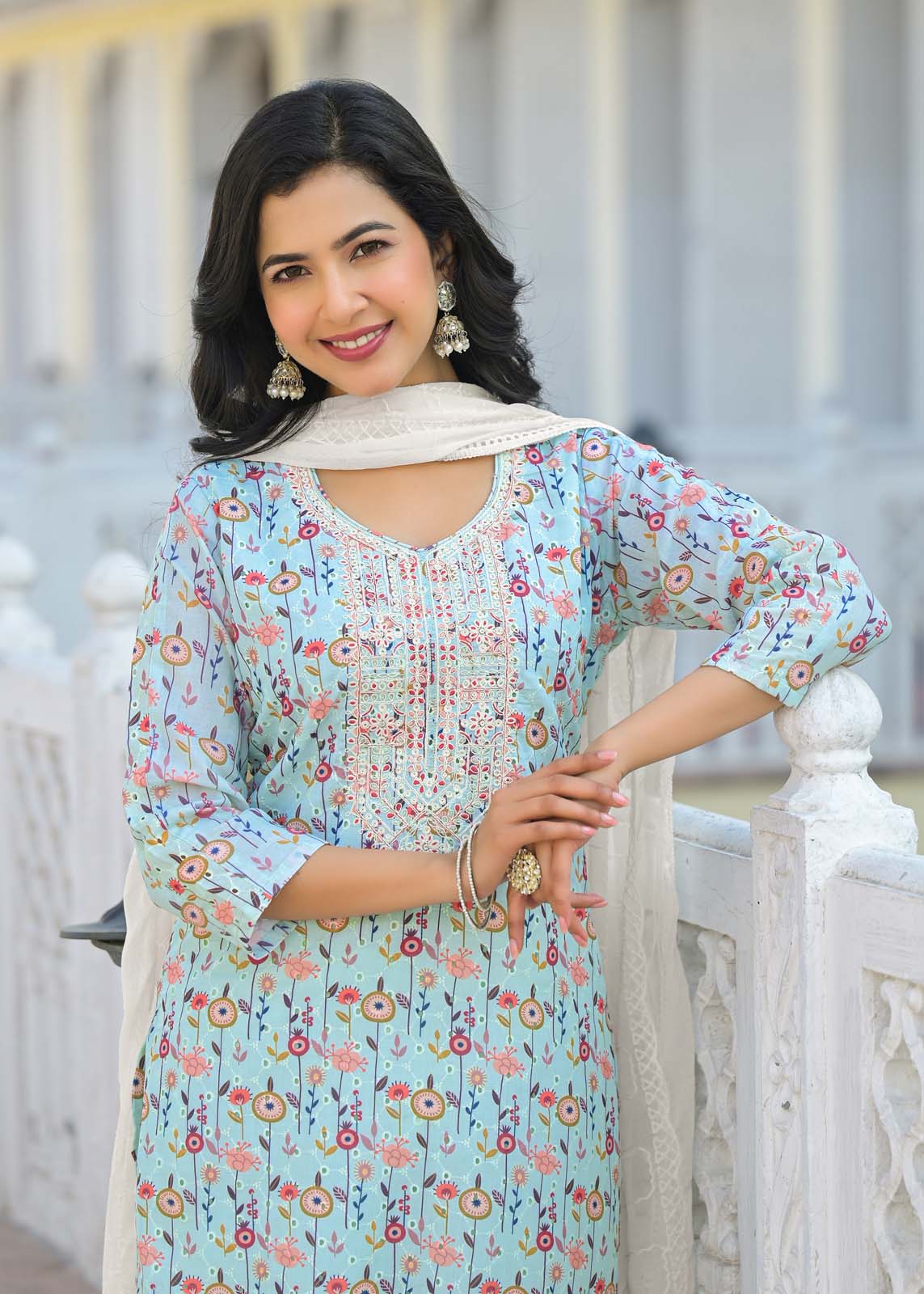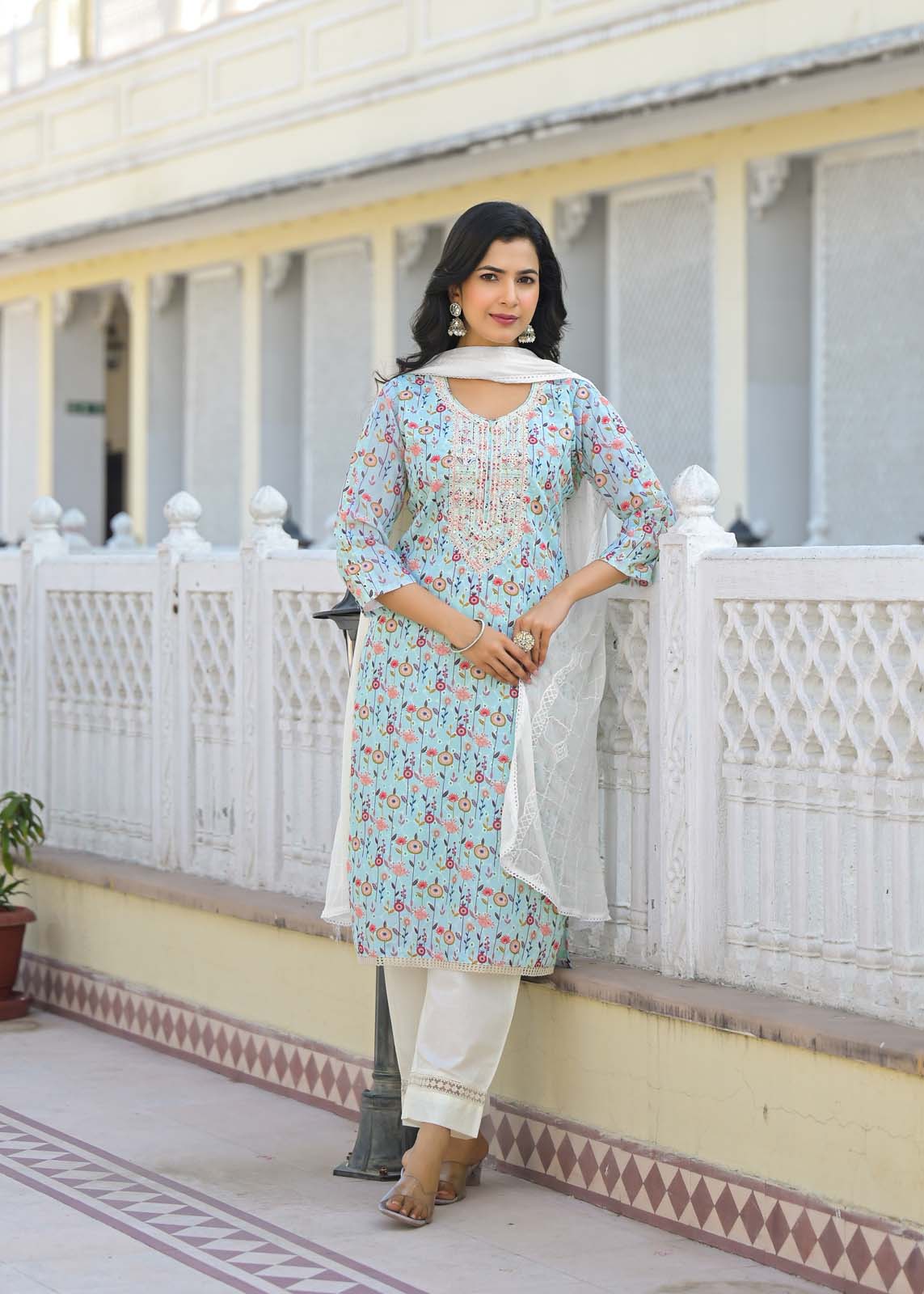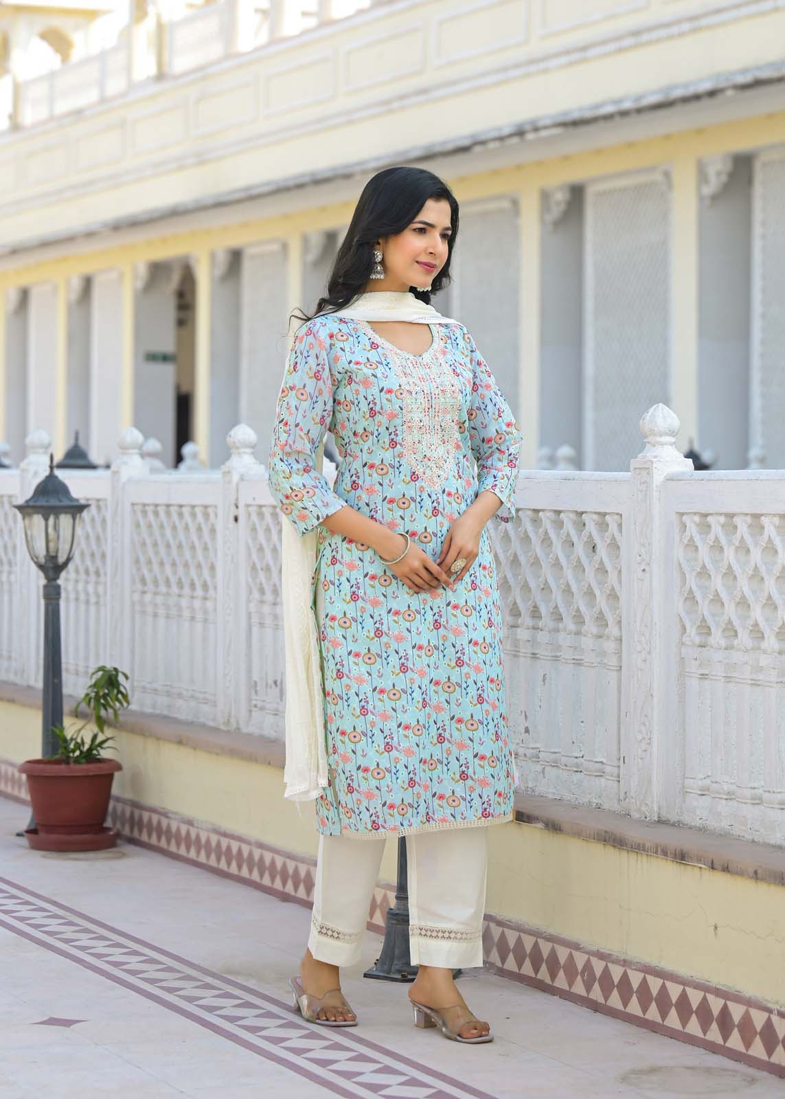 Label Khoj Women cotton kurta, trouser and dupptta set