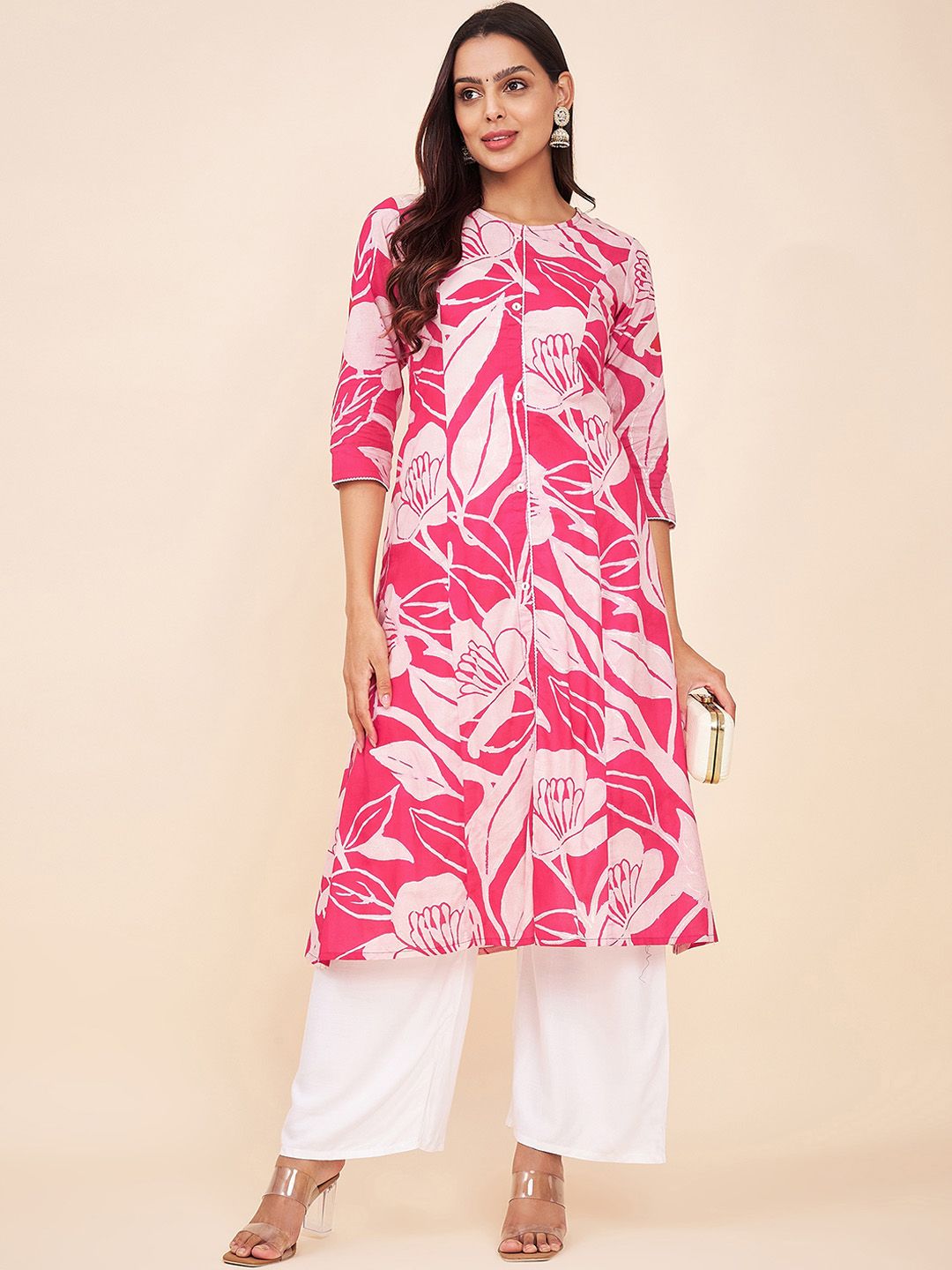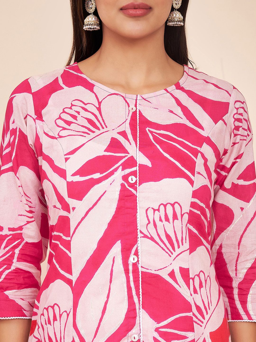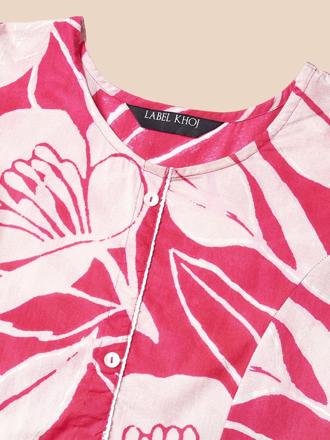 Label Khoj Women Cotton Pink Floral Kurta