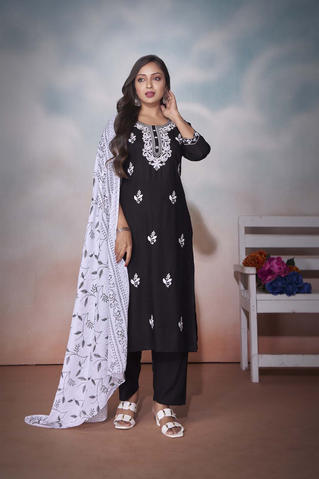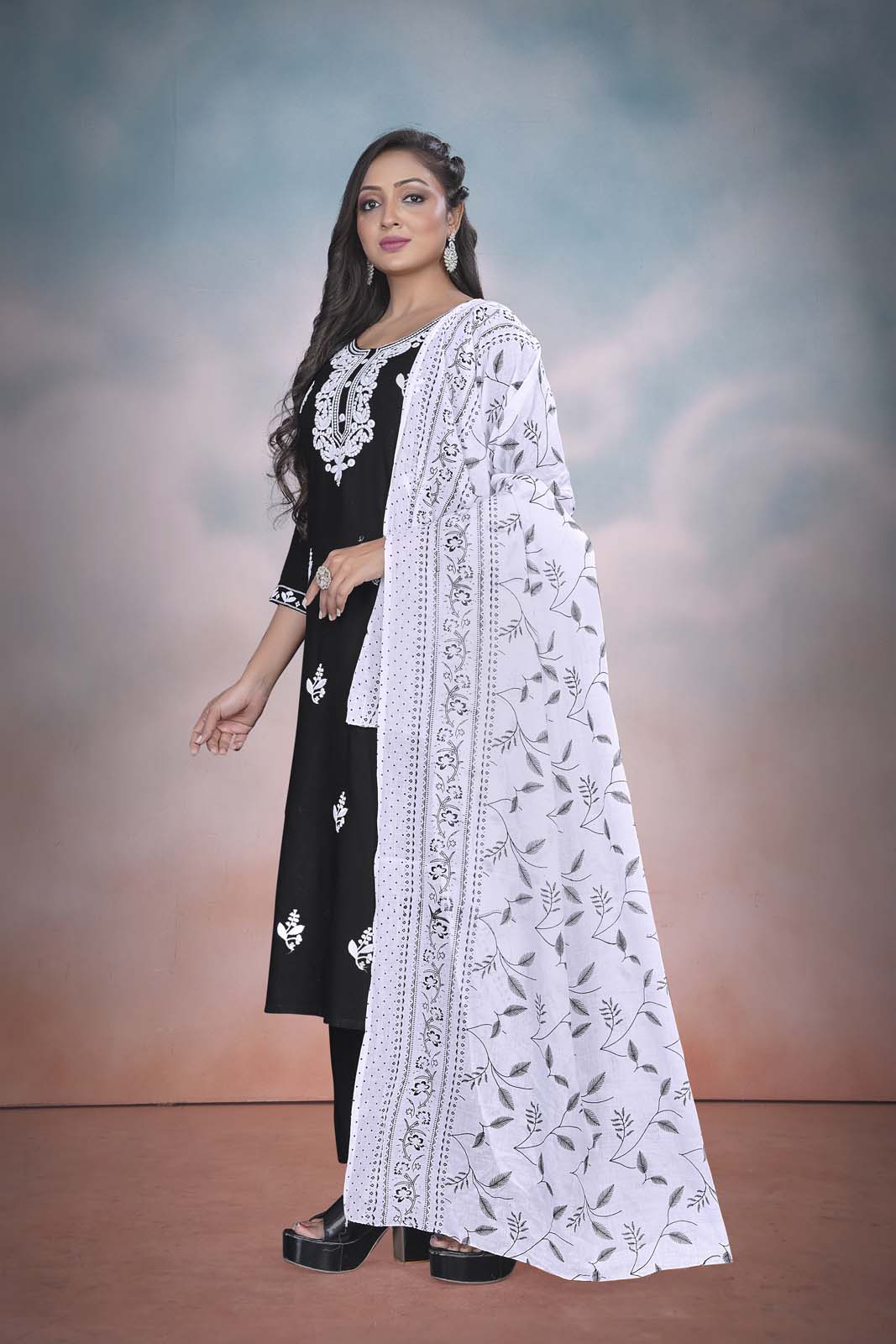 - Label Khoj Women’S Heavy Embroidery Kurta Trouser and Printed Dupatta Set (BLACK) kurta set with dupatta,