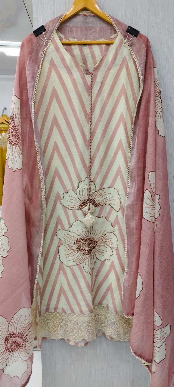 Label Khoj Women Lilen kurta, trouser and dupptta set