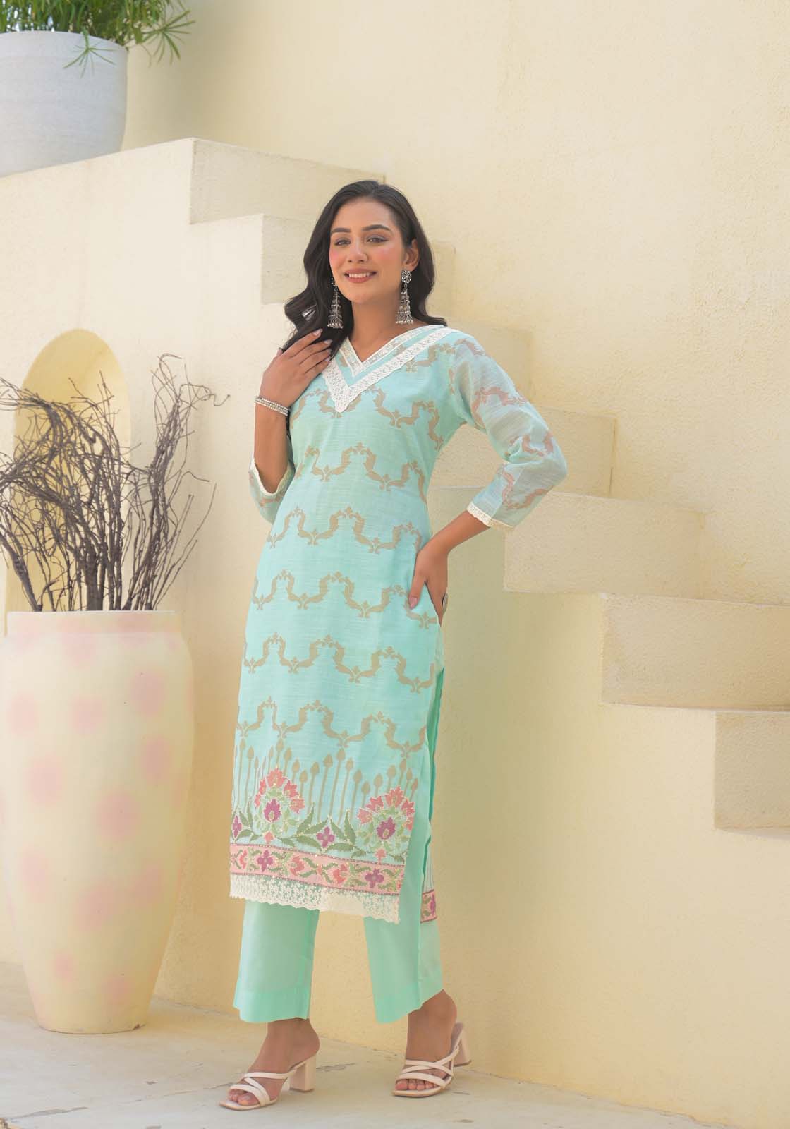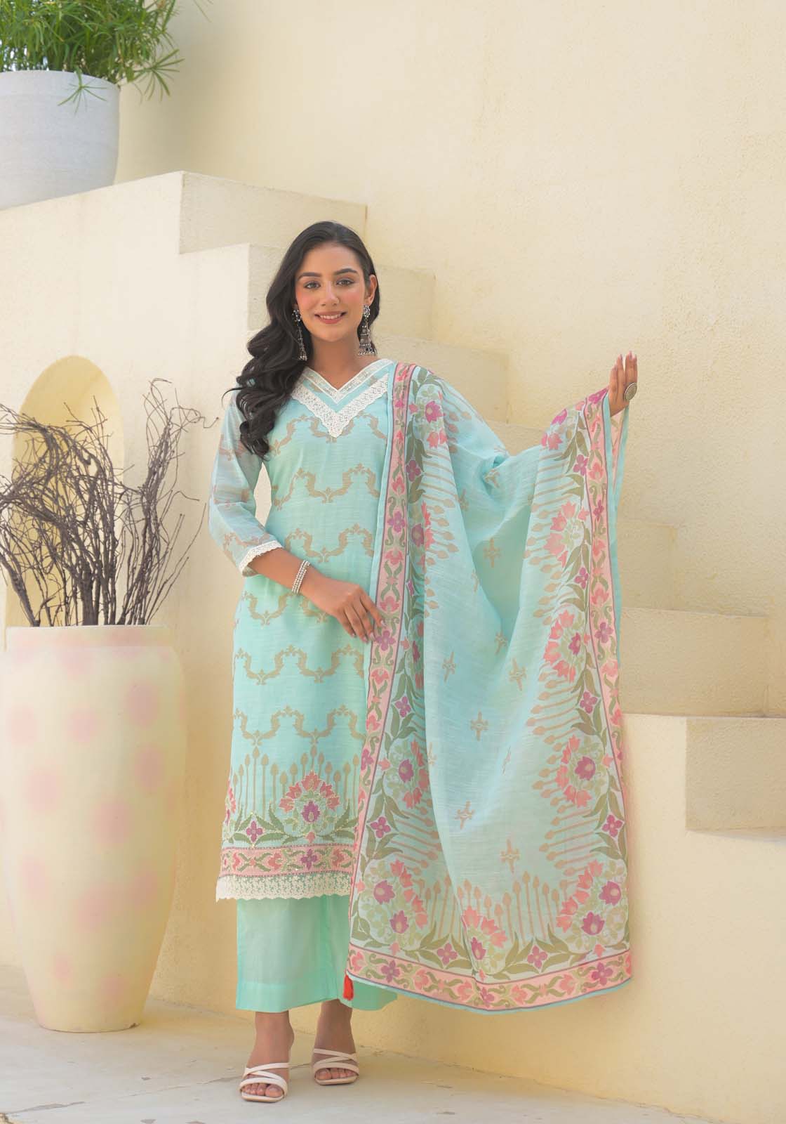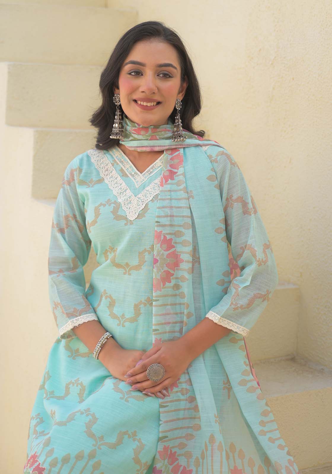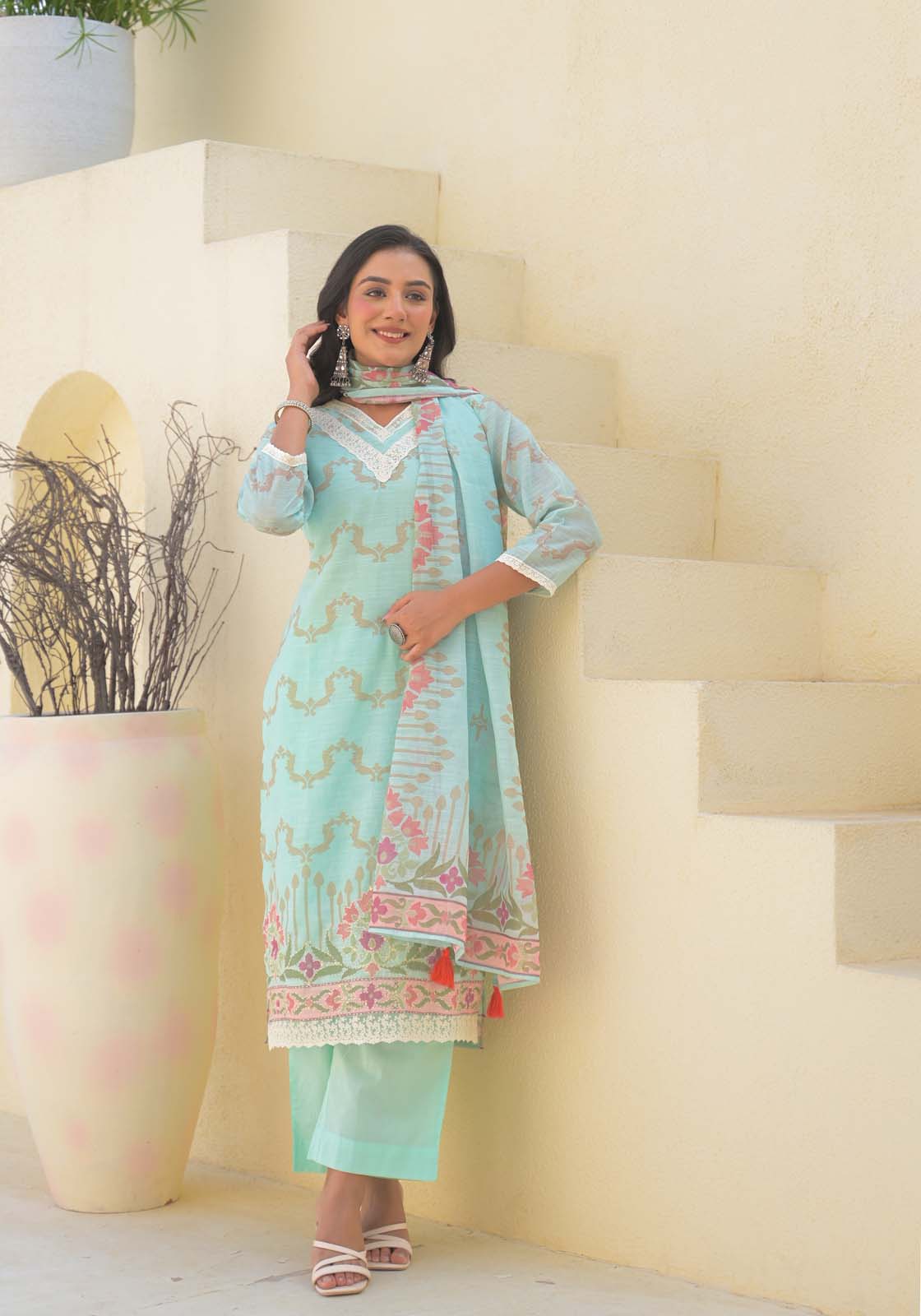Label Khoj Women Lilen kurta, trouser and dupptta set